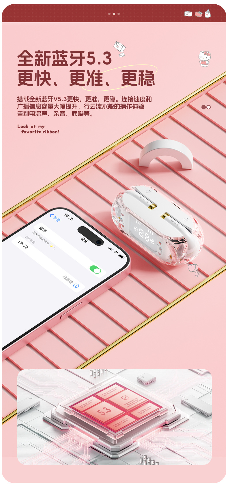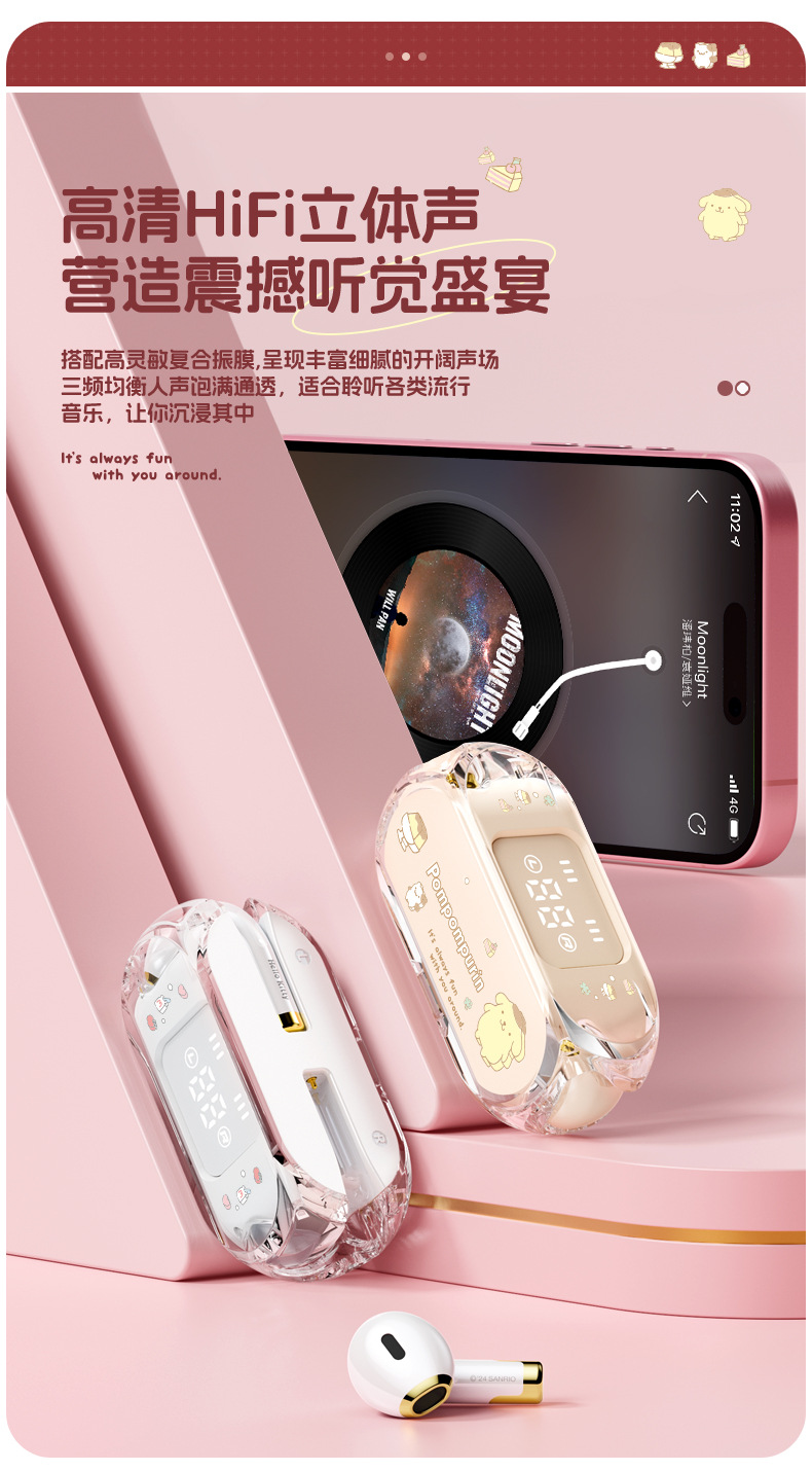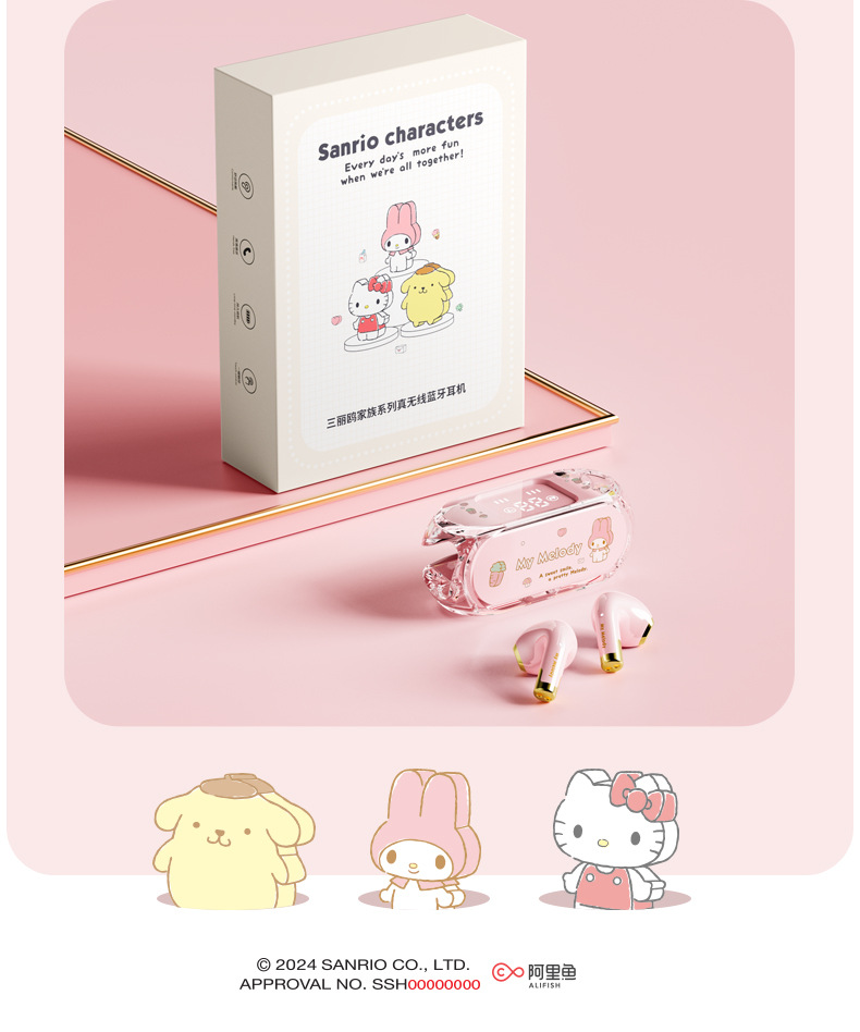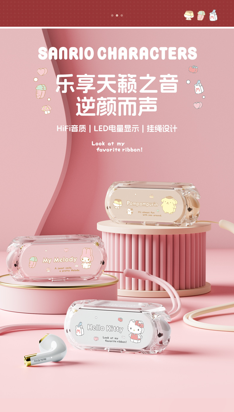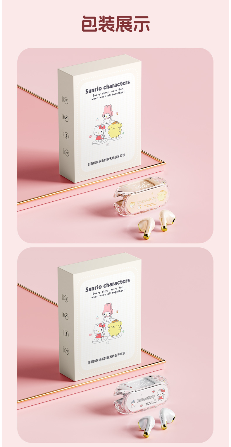 산리오 블루투스 헤드셋 스트립 귀여운 휴대용 투명 스포츠 인 이어 헤드셋 긴 수명과 좋은 음질스토어 가기