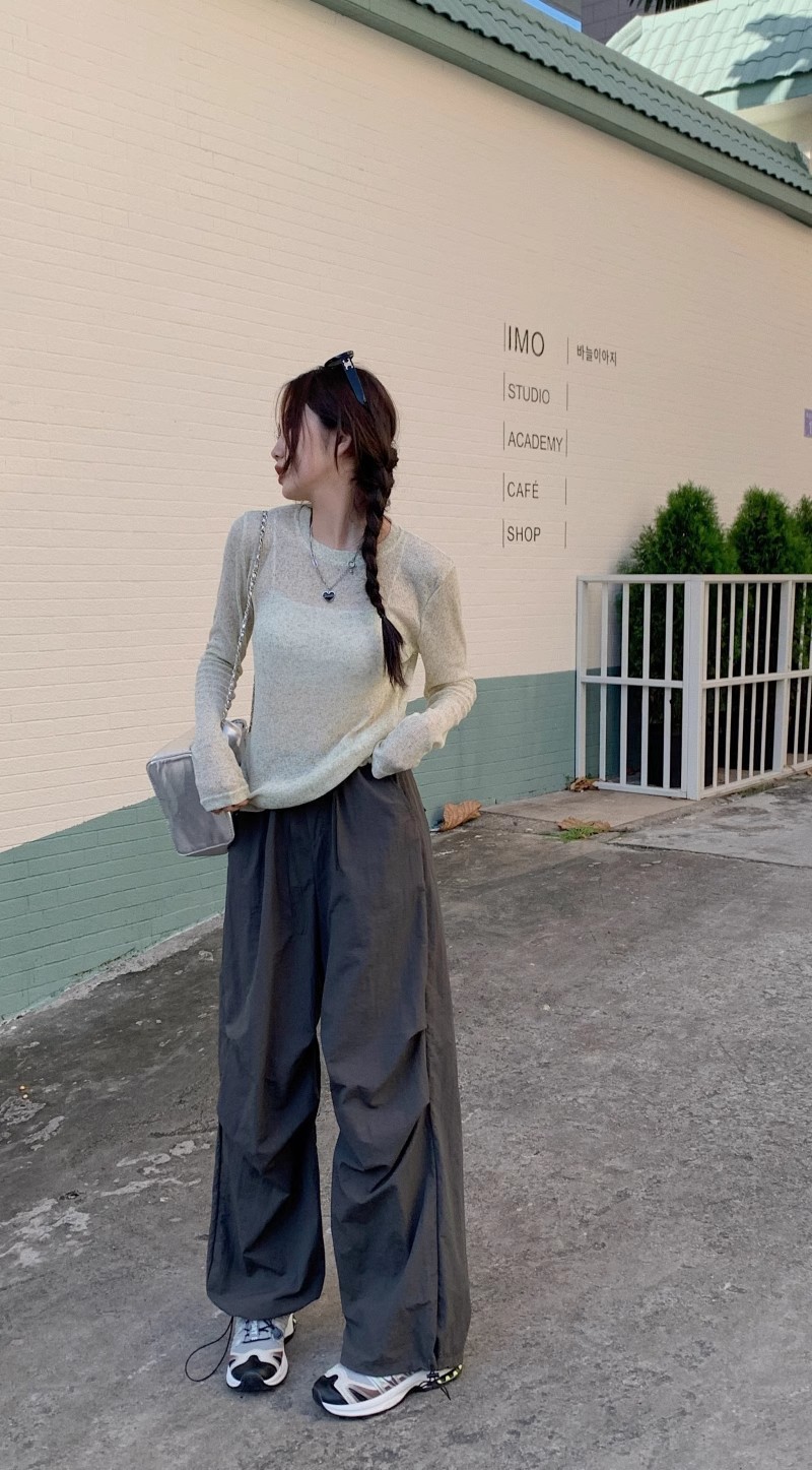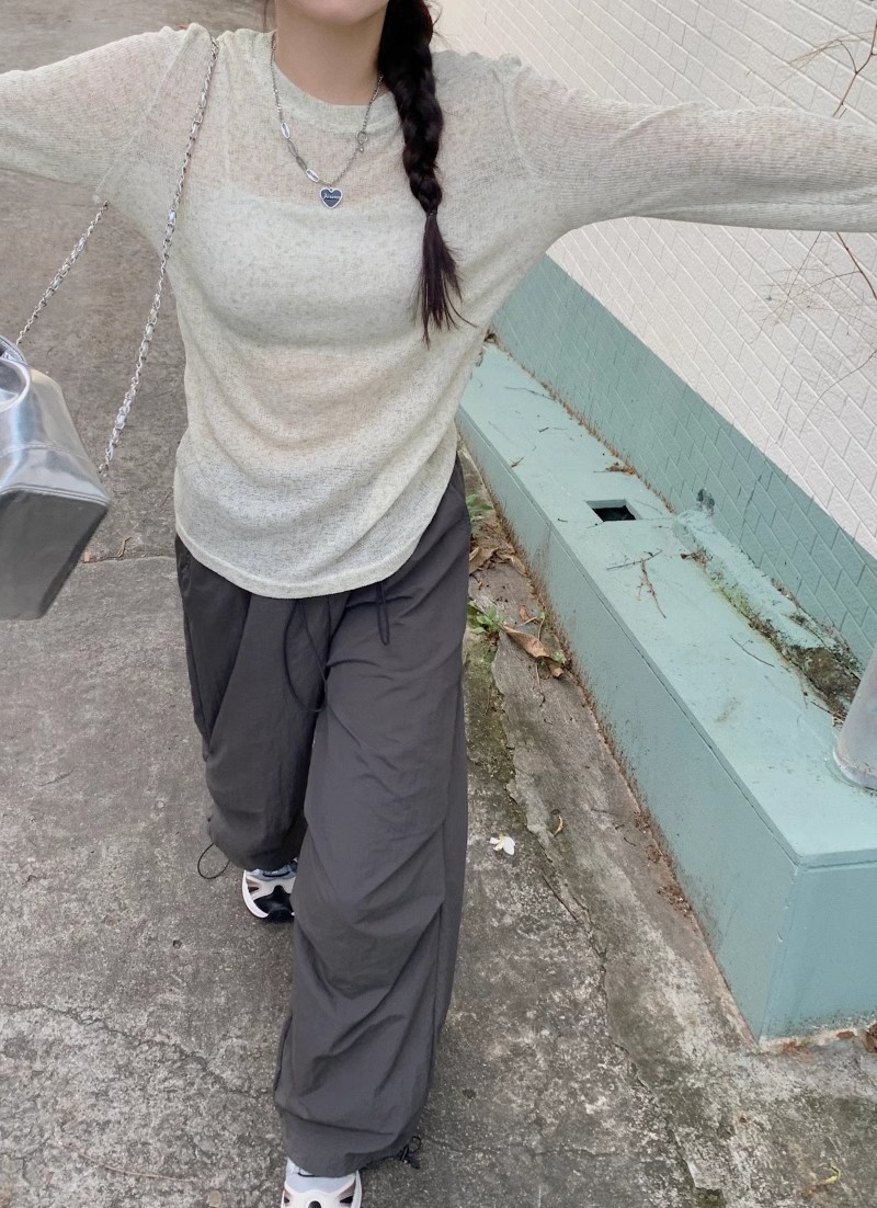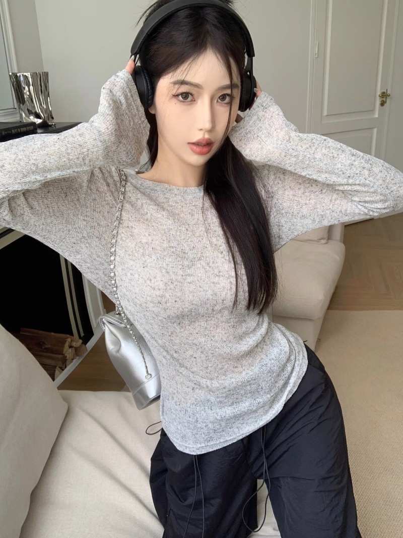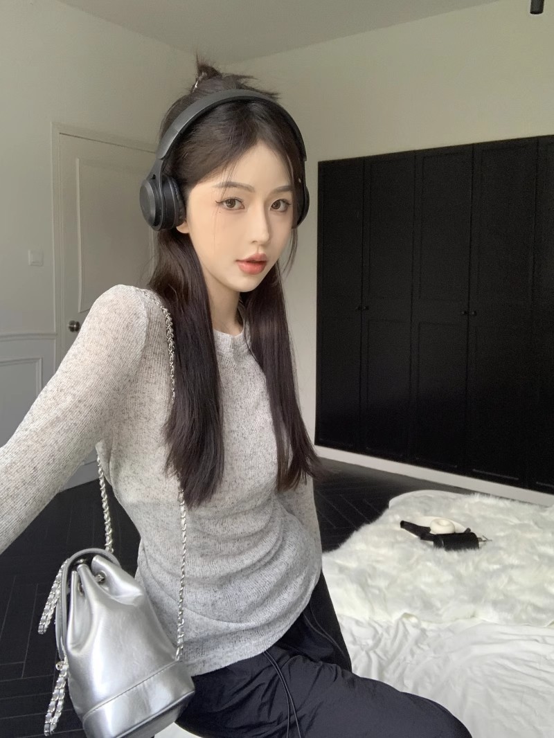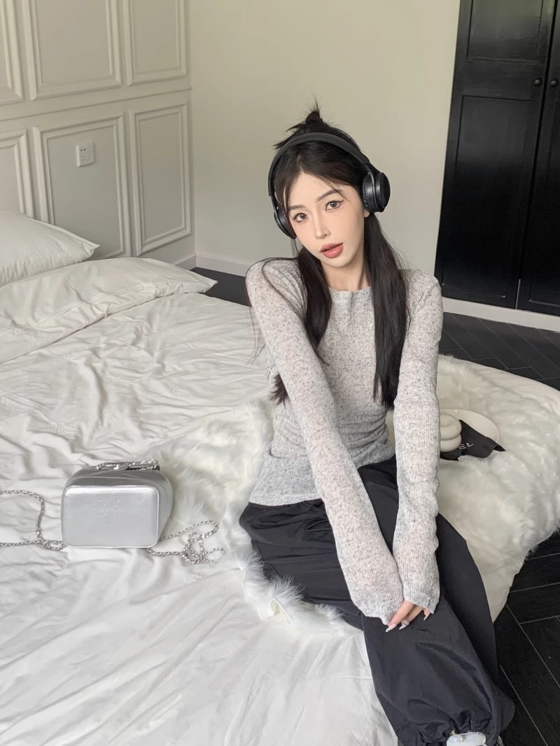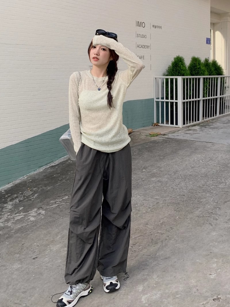 여성 여름 새로운 한국 스타일 라운드 넥 선 스크린 블라우스 슬림 핏 아름다운 탑