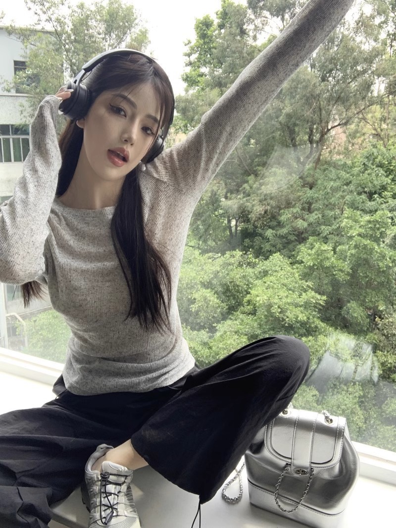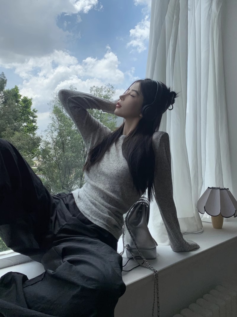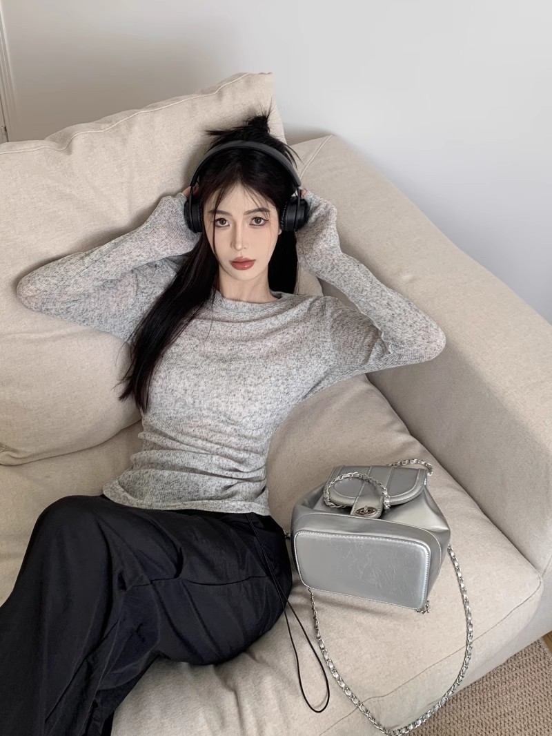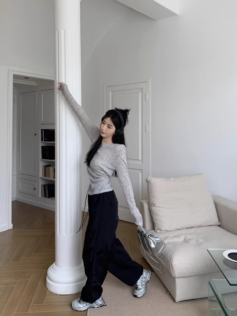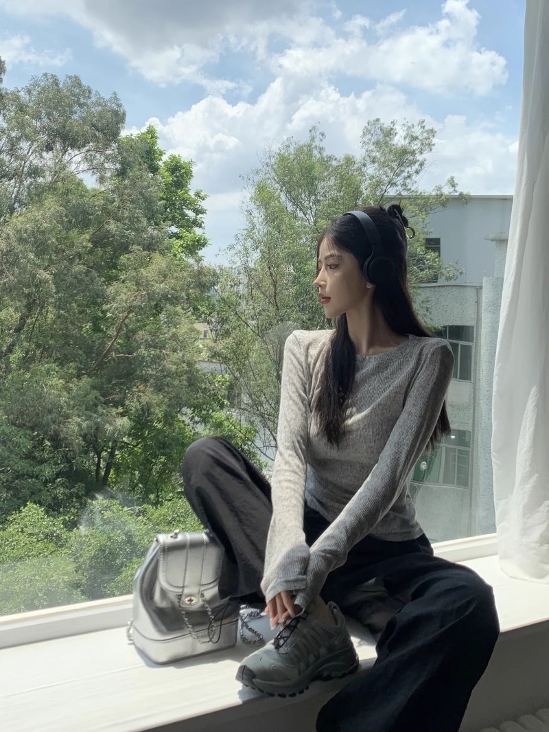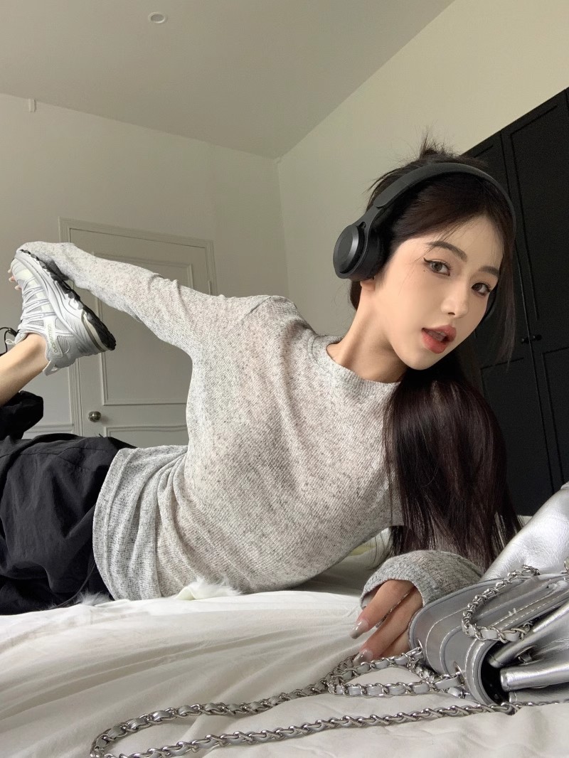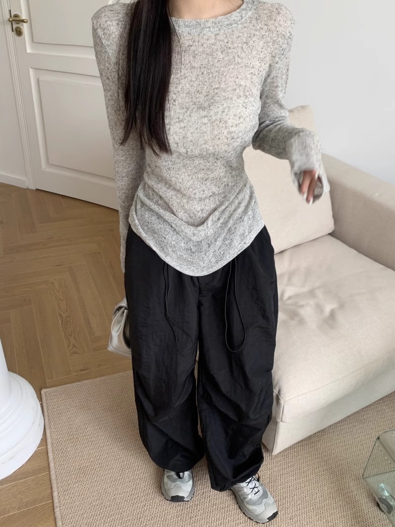 여성 여름 새로운 한국 스타일 라운드 넥 선 스크린 블라우스 슬림 핏 아름다운 탑