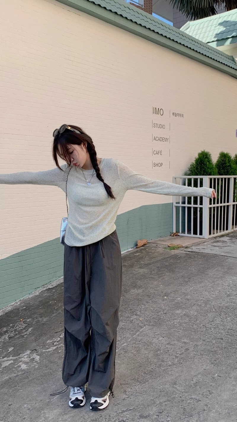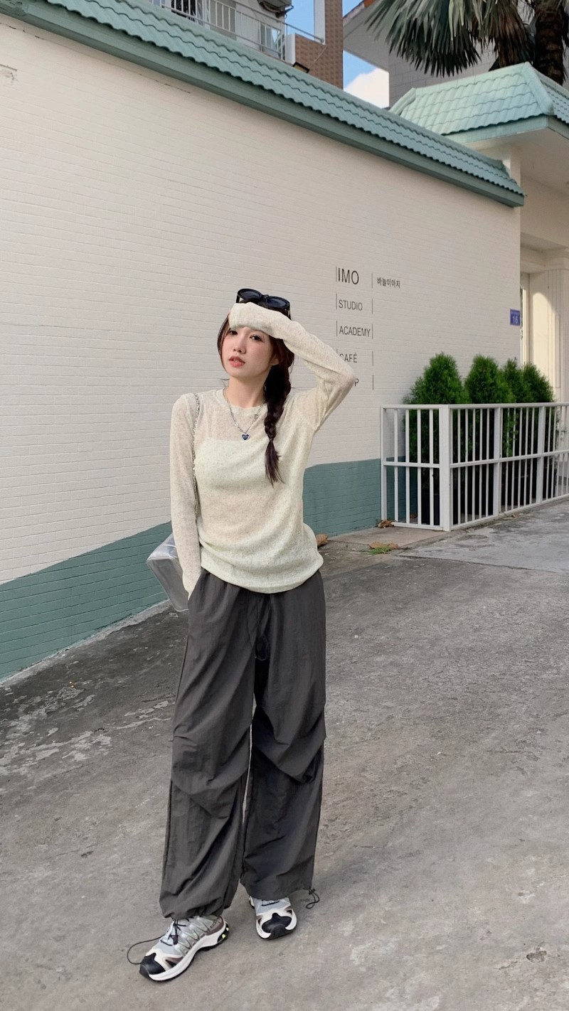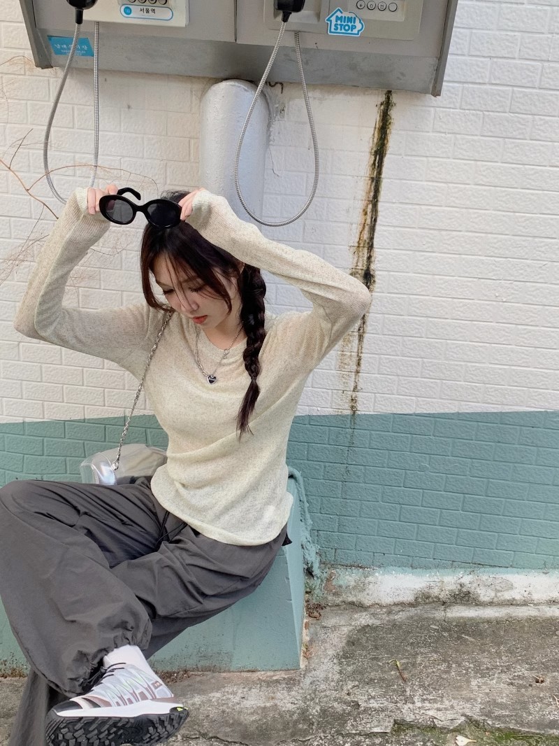 여성 여름 새로운 한국 스타일 라운드 넥 선 스크린 블라우스 슬림 핏 아름다운 탑스토어 가기