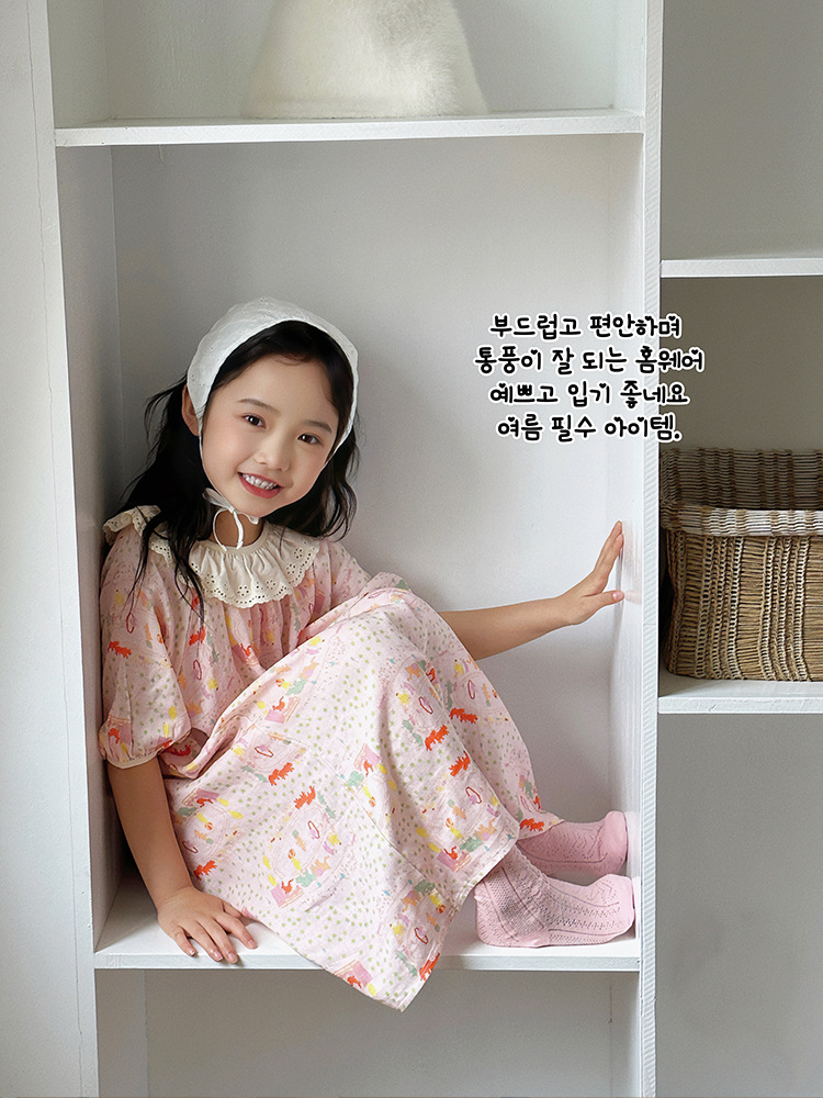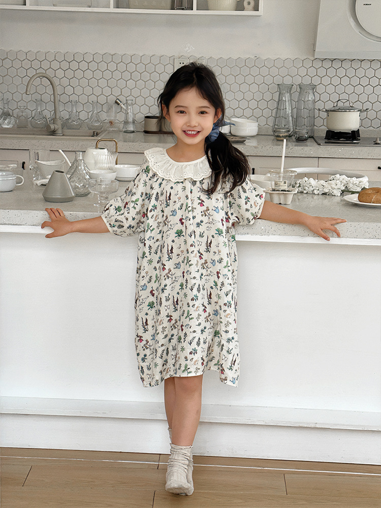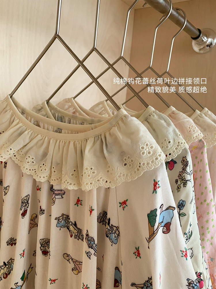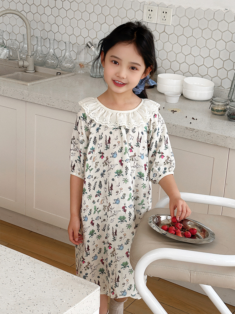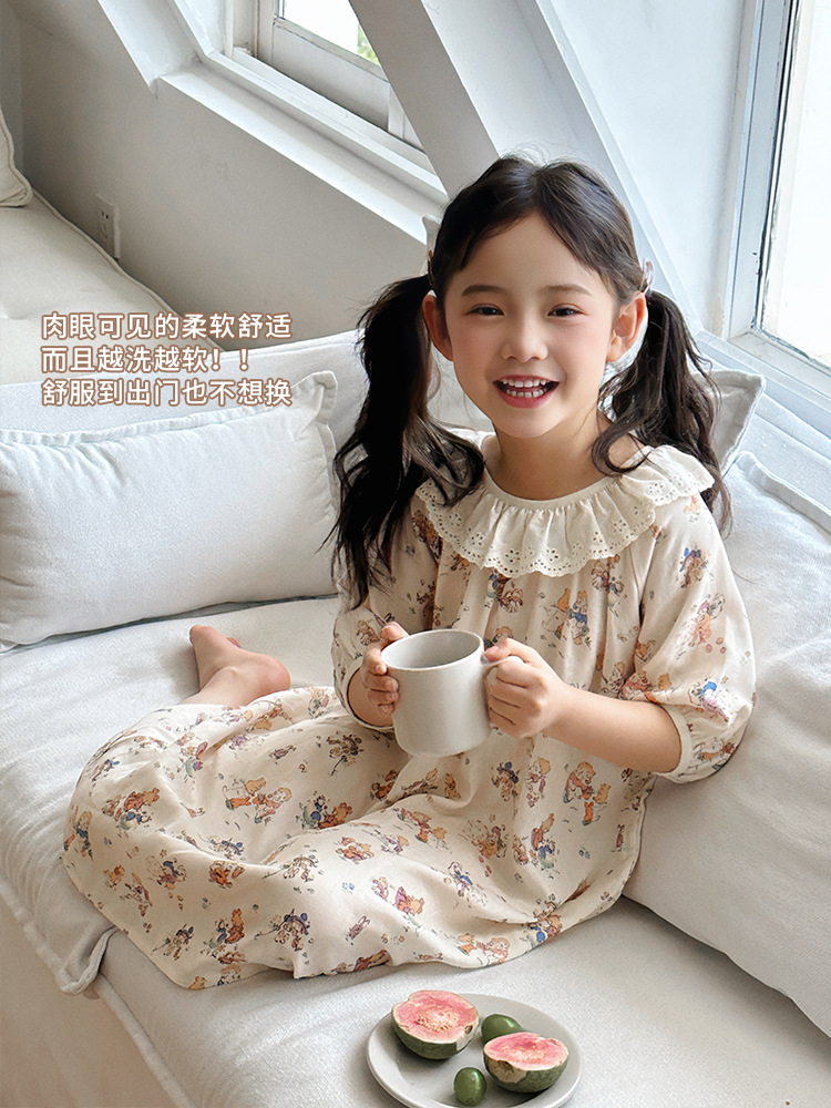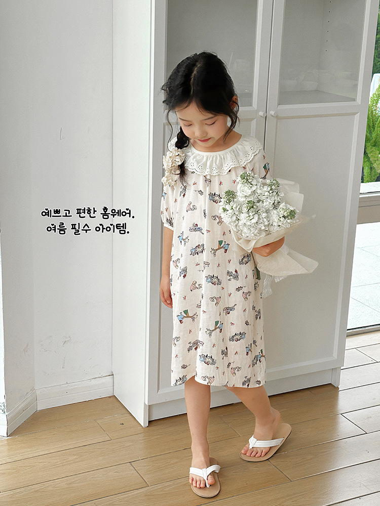 여름용 대나무 면 거즈 잠옷 얇은 아동용 홈웨어 여아 레이스 인형 칼라 원피스 흡습 발한스토어 가기