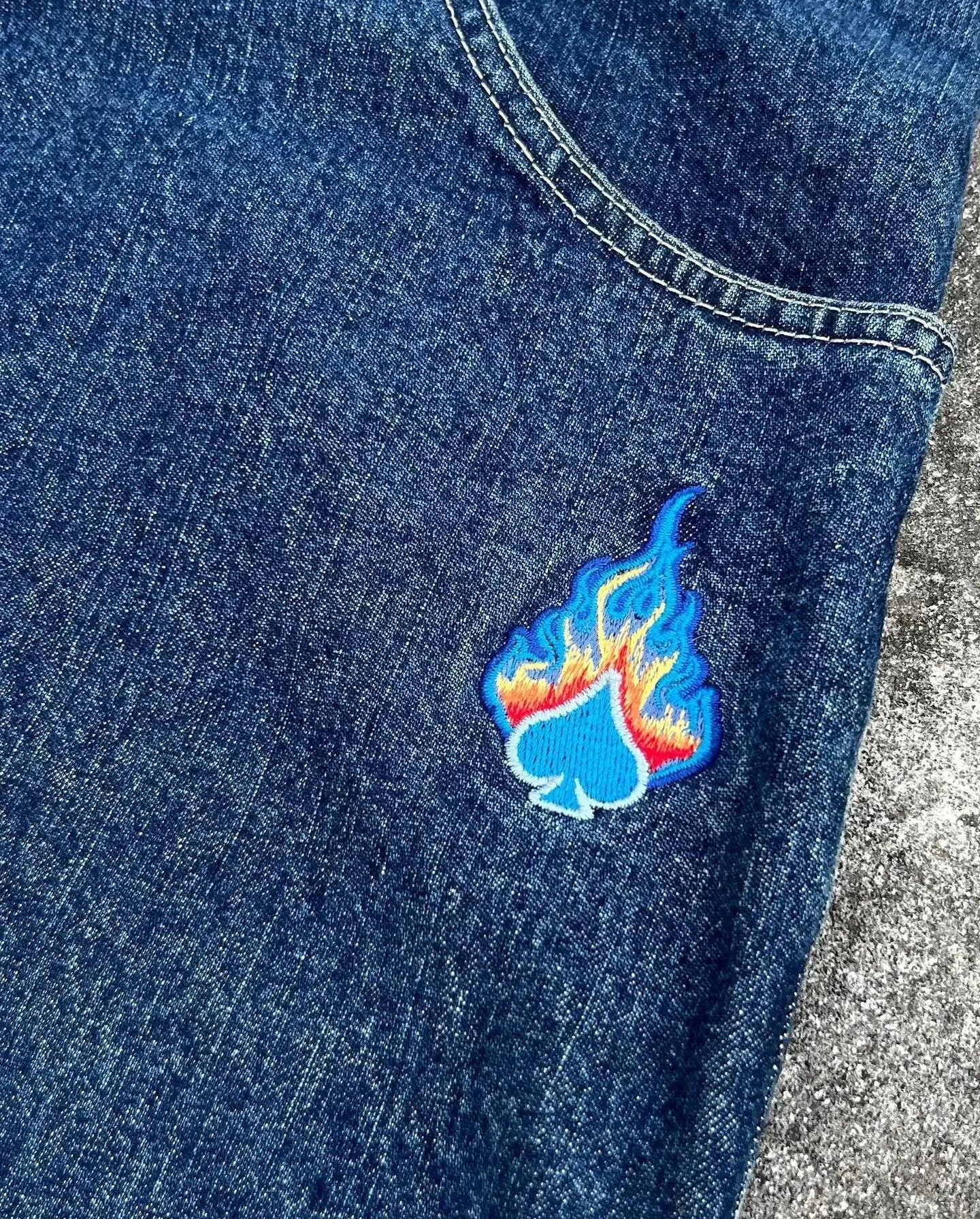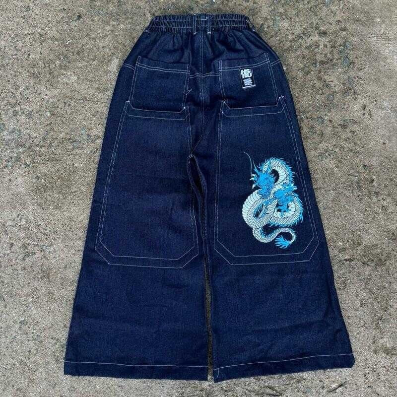 국경 간 전자 상거래 JNCO Y2K 루즈 청바지 남자 복고풍 자수 힙합 스트리트 하라주쿠 남자 와이드 다리 바지스토어 가기