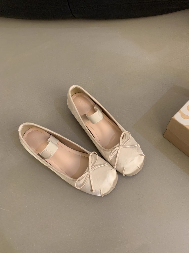 새로운 중국 프랑스 스타일 활 실버 메리 제인 신발 플랫 신발 발레 신발 봄과 여름 저녁 부드러운 여성 신발스토어 가기
