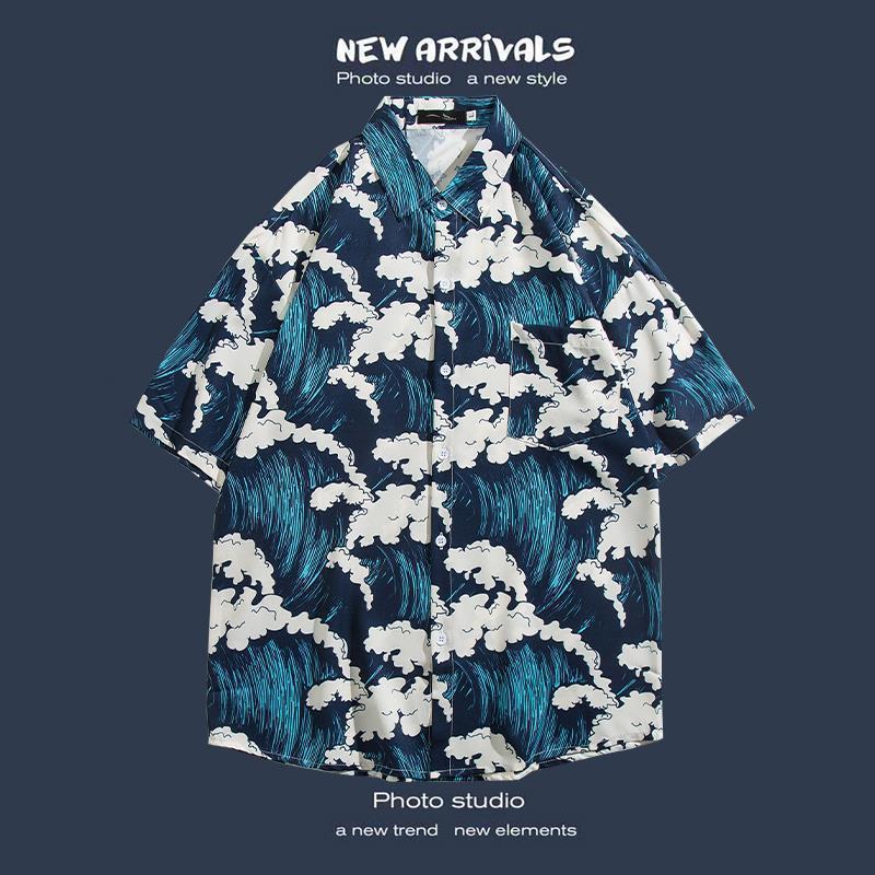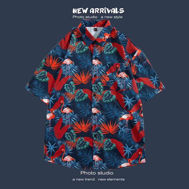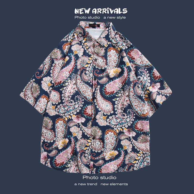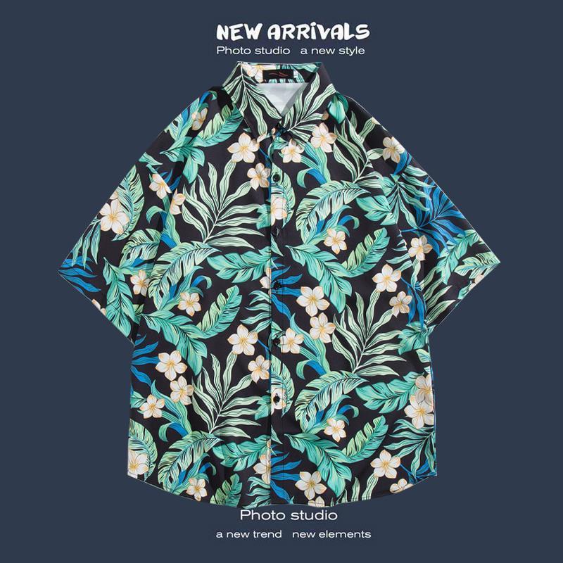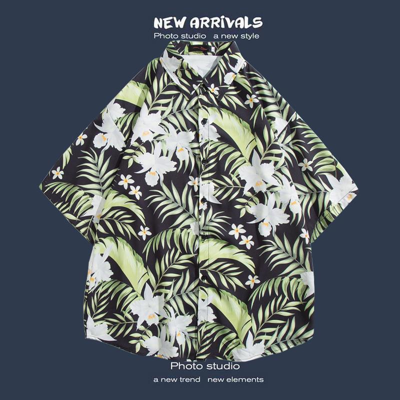 반팔 꽃 무늬 셔츠 하이난 섬 해변 포트 스타일 싼야 시아 웨이 스타일 태국 여행 남성 캐주얼 루즈 재킷