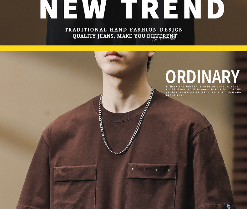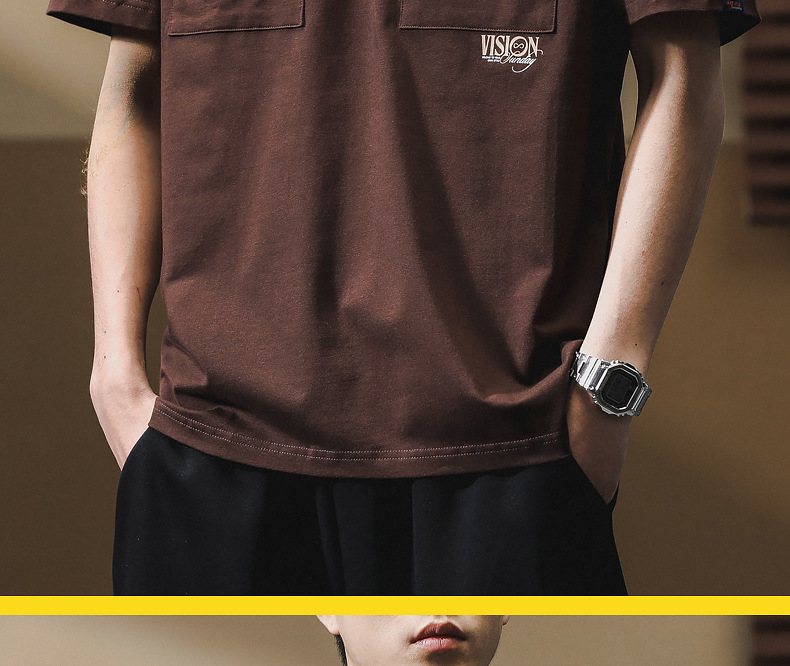 하이 엔드 센스 더블 포켓 프린트 반팔 티셔츠 남성 봄과 여름 새로운 패션 브랜드 헤비급 레트로 반팔 티셔츠 남성용스토어 가기