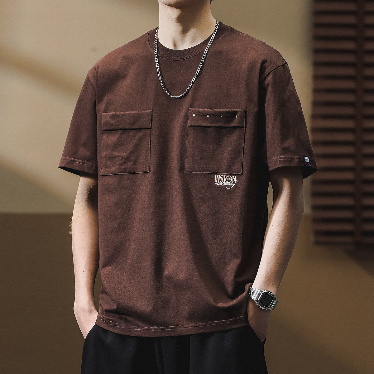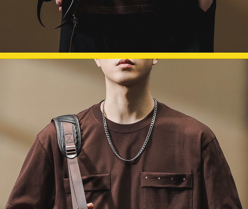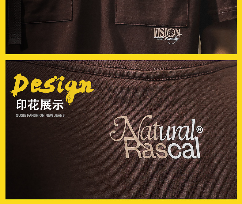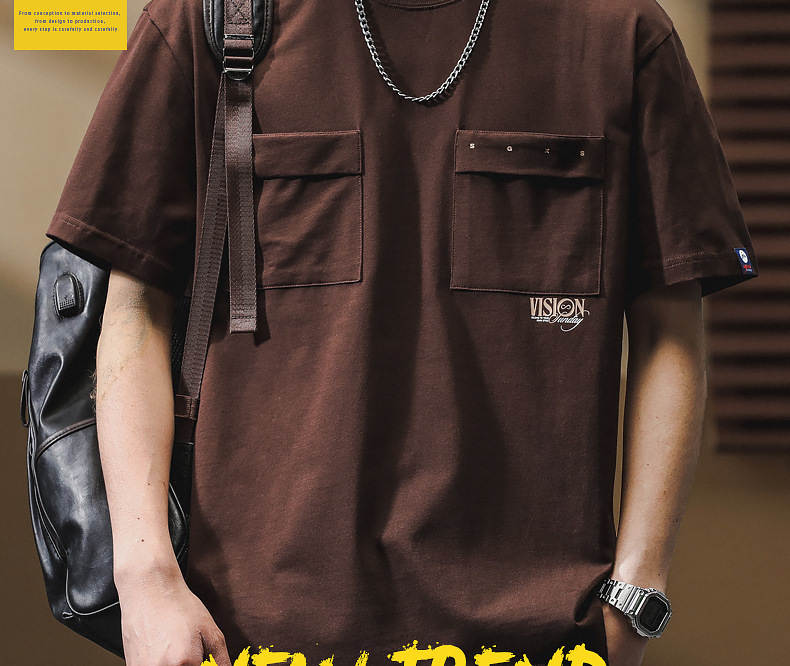 하이 엔드 센스 더블 포켓 프린트 반팔 티셔츠 남성 봄과 여름 새로운 패션 브랜드 헤비급 레트로 반팔 티셔츠 남성용