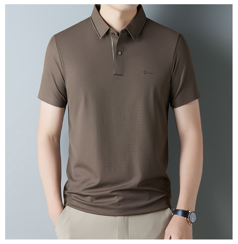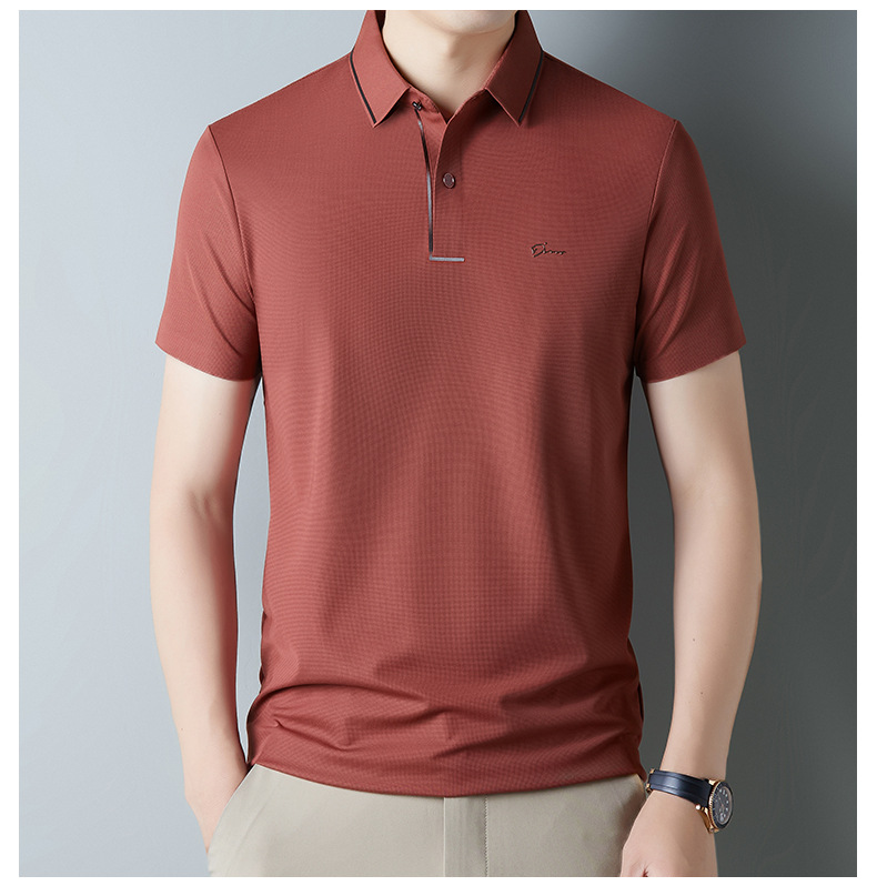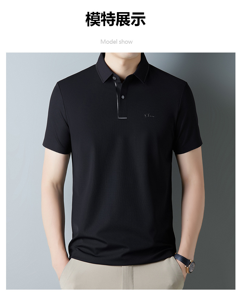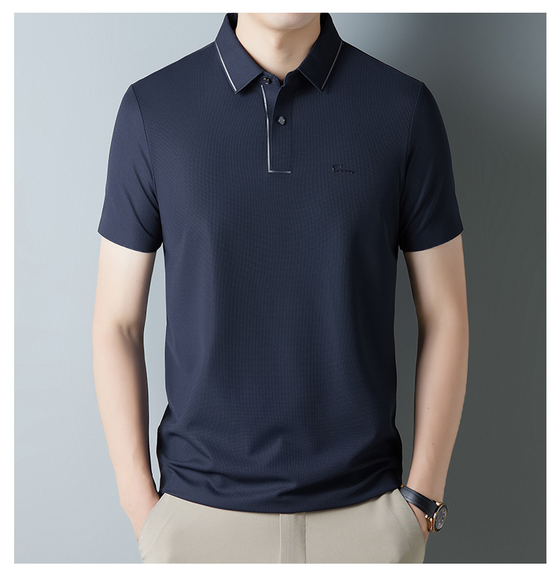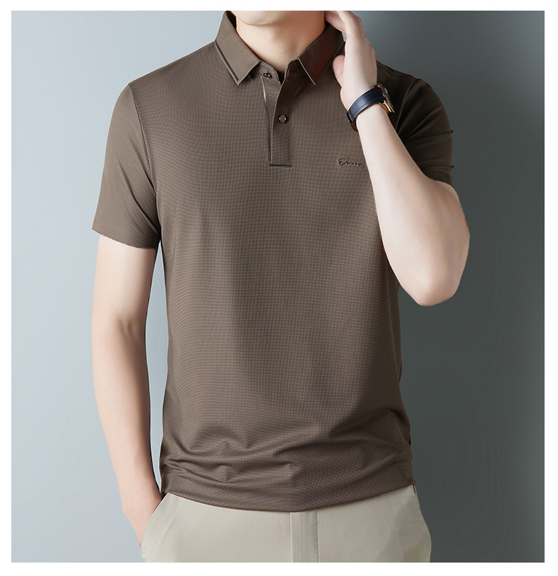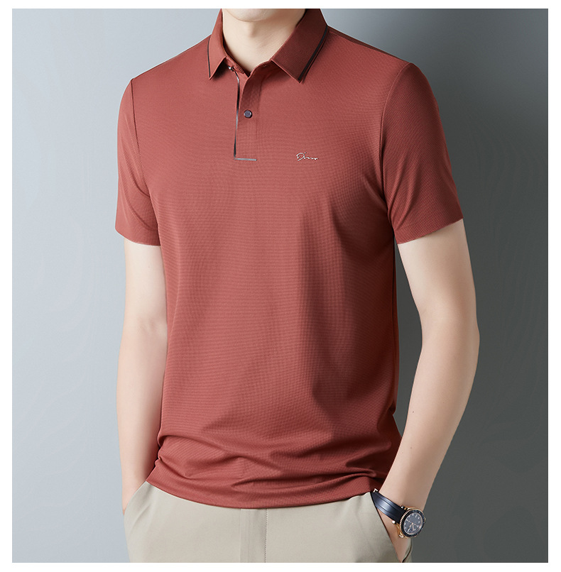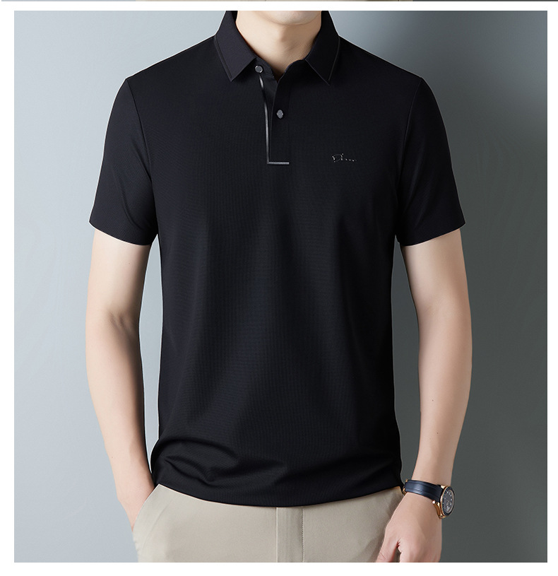 하이 엔드 남성의 새로운 심플 헴 스플릿 원활한 티셔츠 여름 비즈니스 캐주얼 컬러 매칭 핫 스탬핑 옷깃 폴로