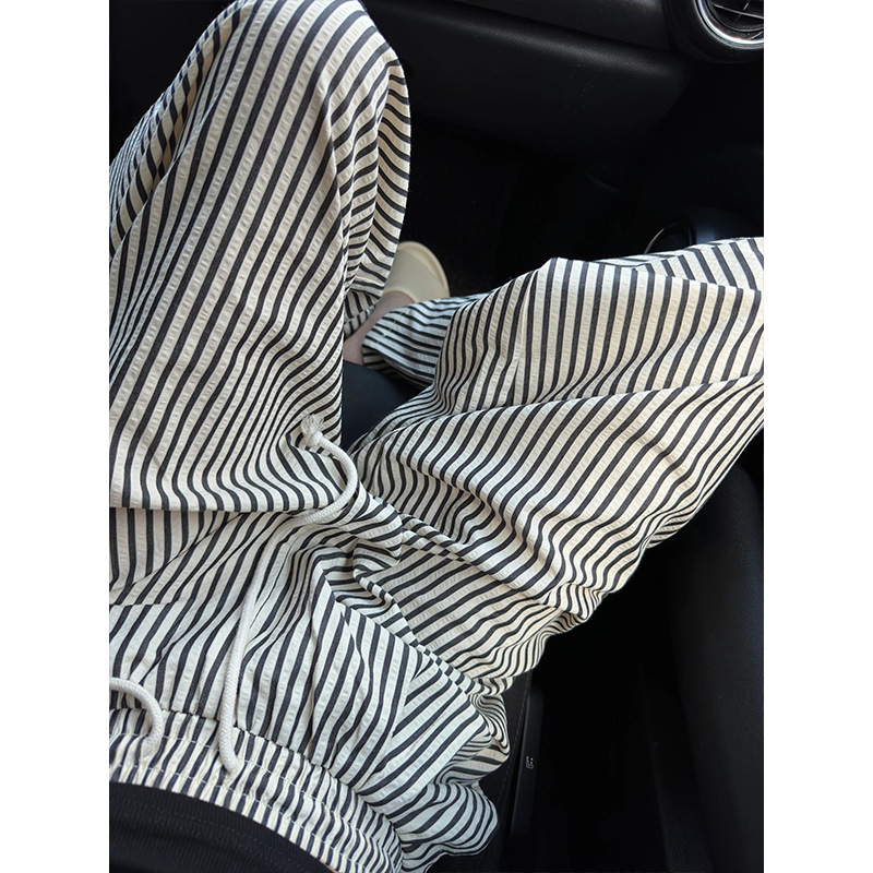 넓은 다리 바지 여성 여름 새로운 게으른 높은 허리 슬리밍 흑백 세로 줄무늬 세로 줄무늬 세로 감각 얇은 캐주얼 바지 머리카락 세대스토어 가기
