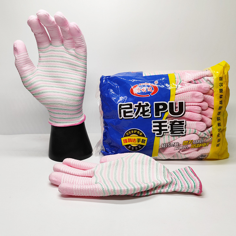 Longlida 얇은 나일론 PU 장갑 얼룩말 패턴 접착제 코팅 팜 여름 통기성 미끄럼 방지 노동 노동 보호 장갑