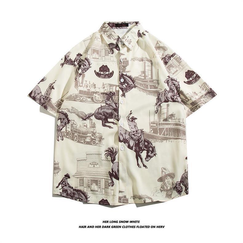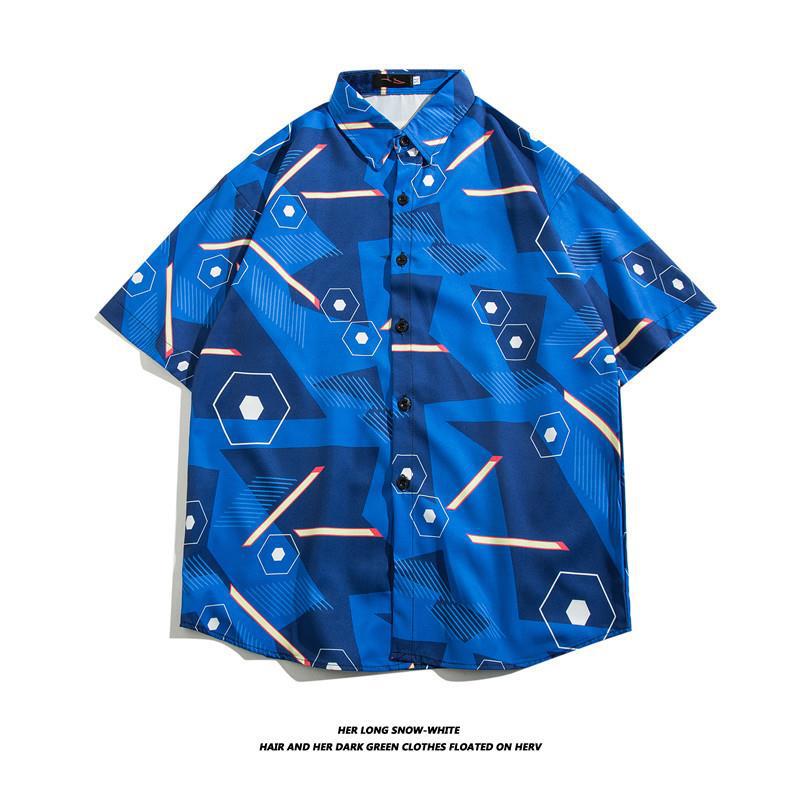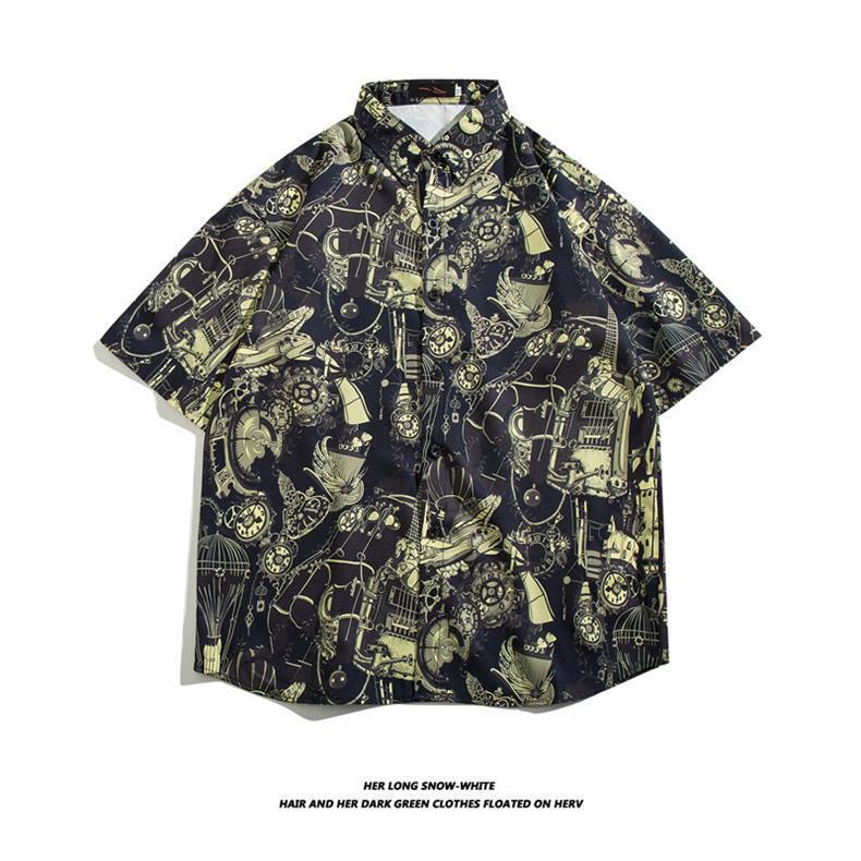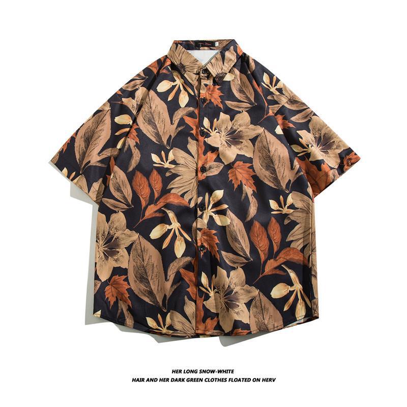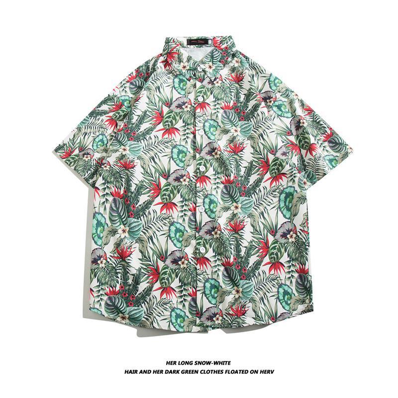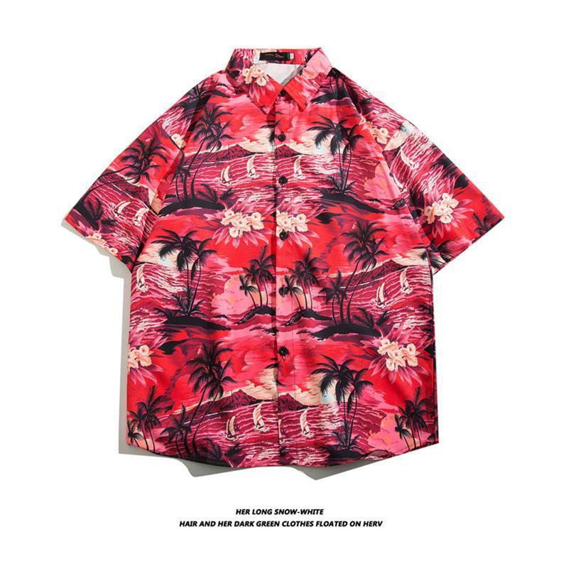 하와이 아이스 실크 셔츠 남성 트렌디 반팔 셔츠 남성 여름 해변 꽃 셔츠 커플 착용 루즈 자켓