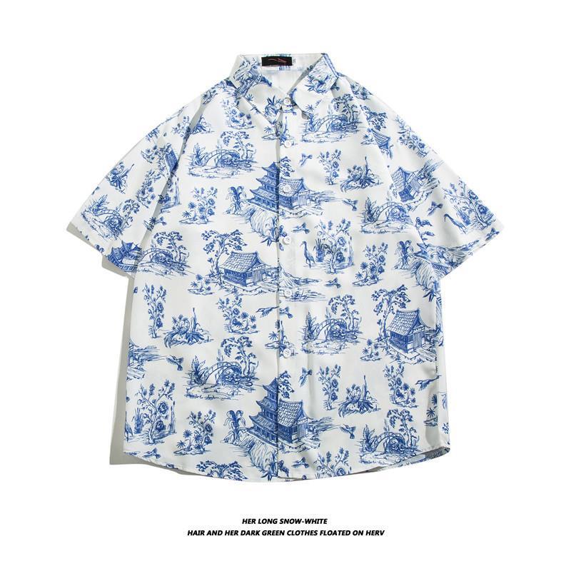 하와이 아이스 실크 셔츠 남성 트렌디 반팔 셔츠 남성 여름 해변 꽃 셔츠 커플 착용 루즈 자켓스토어 가기