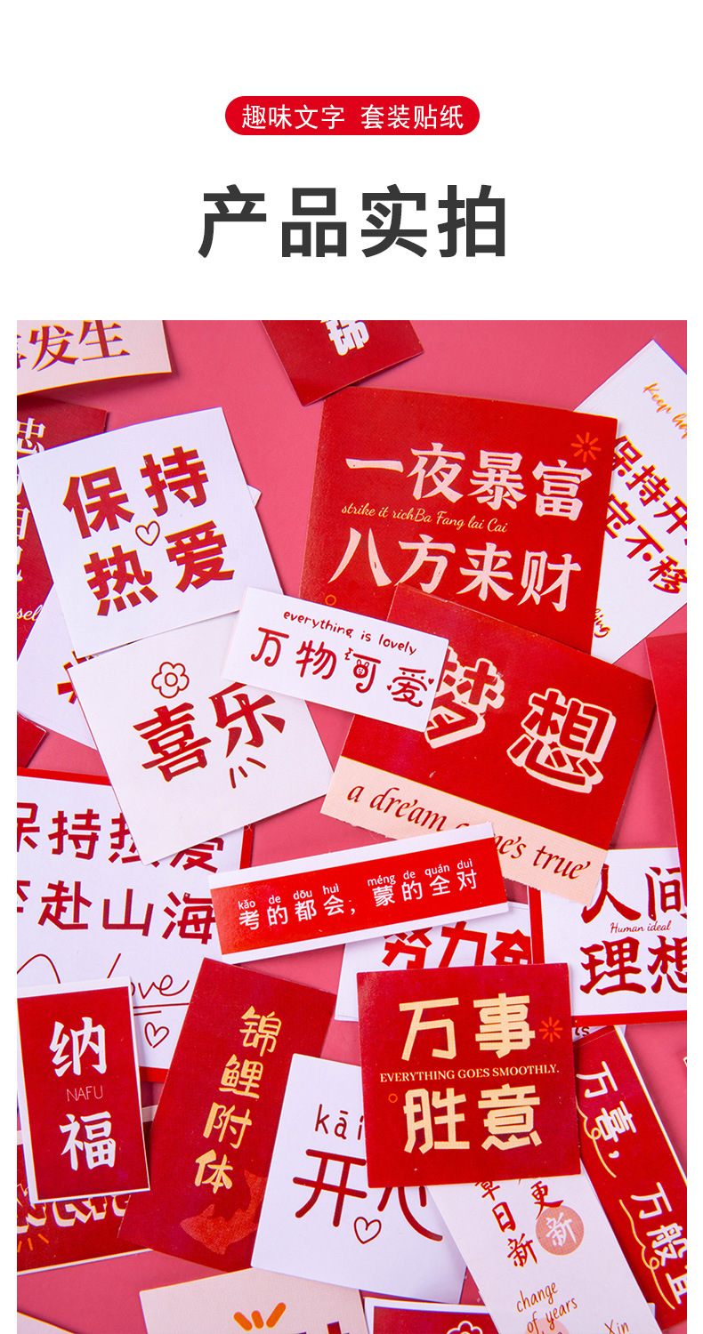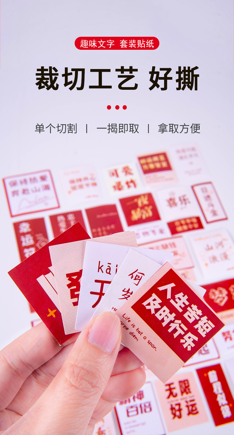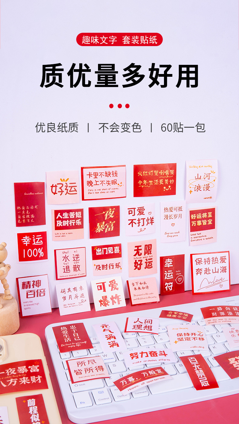 • 감동적인 텍스트 스티커 (레드 시리즈)-60 스티커/팩