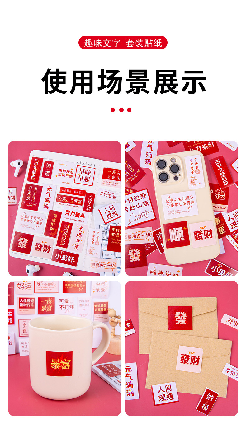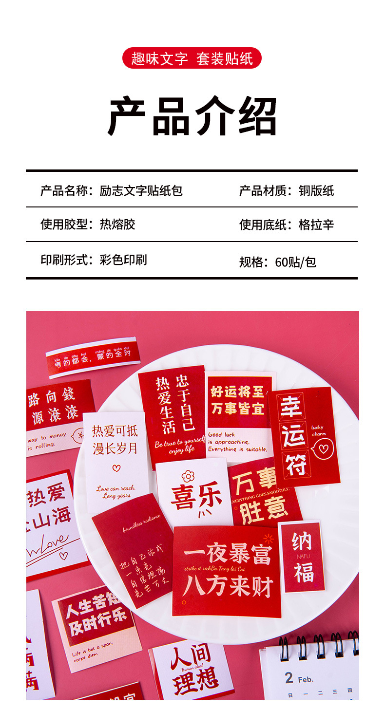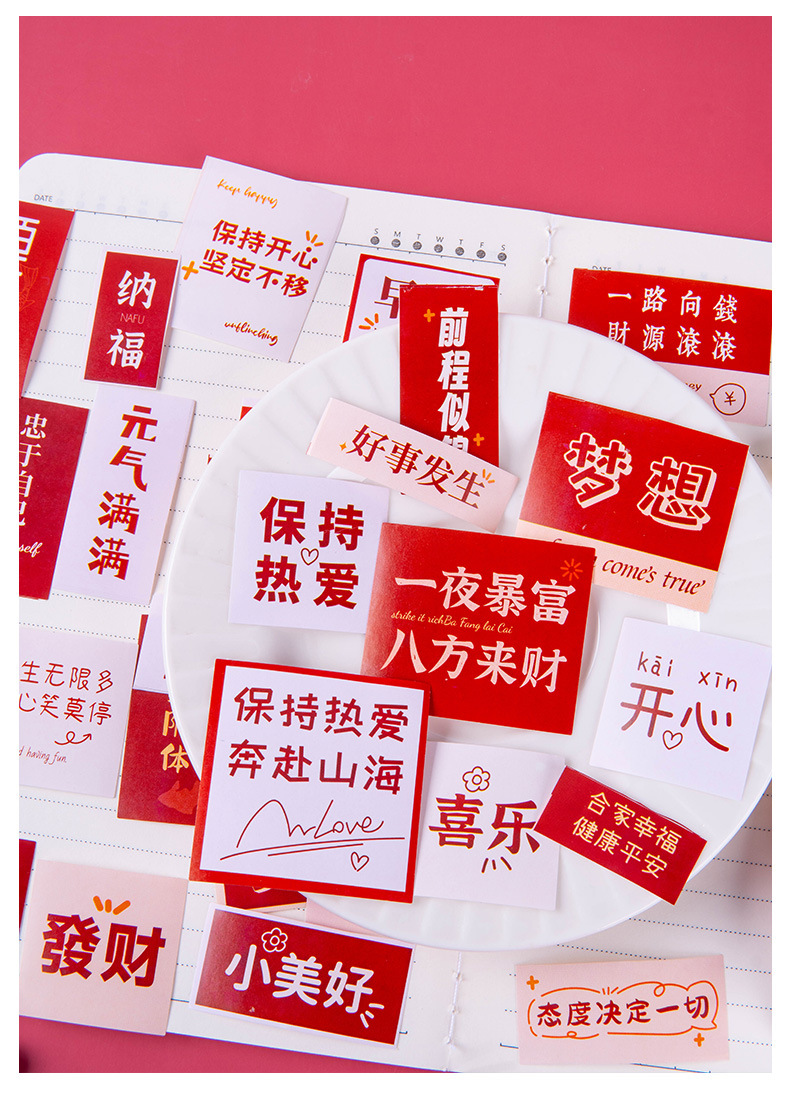 • 감동적인 텍스트 스티커 (레드 시리즈)-60 스티커/팩