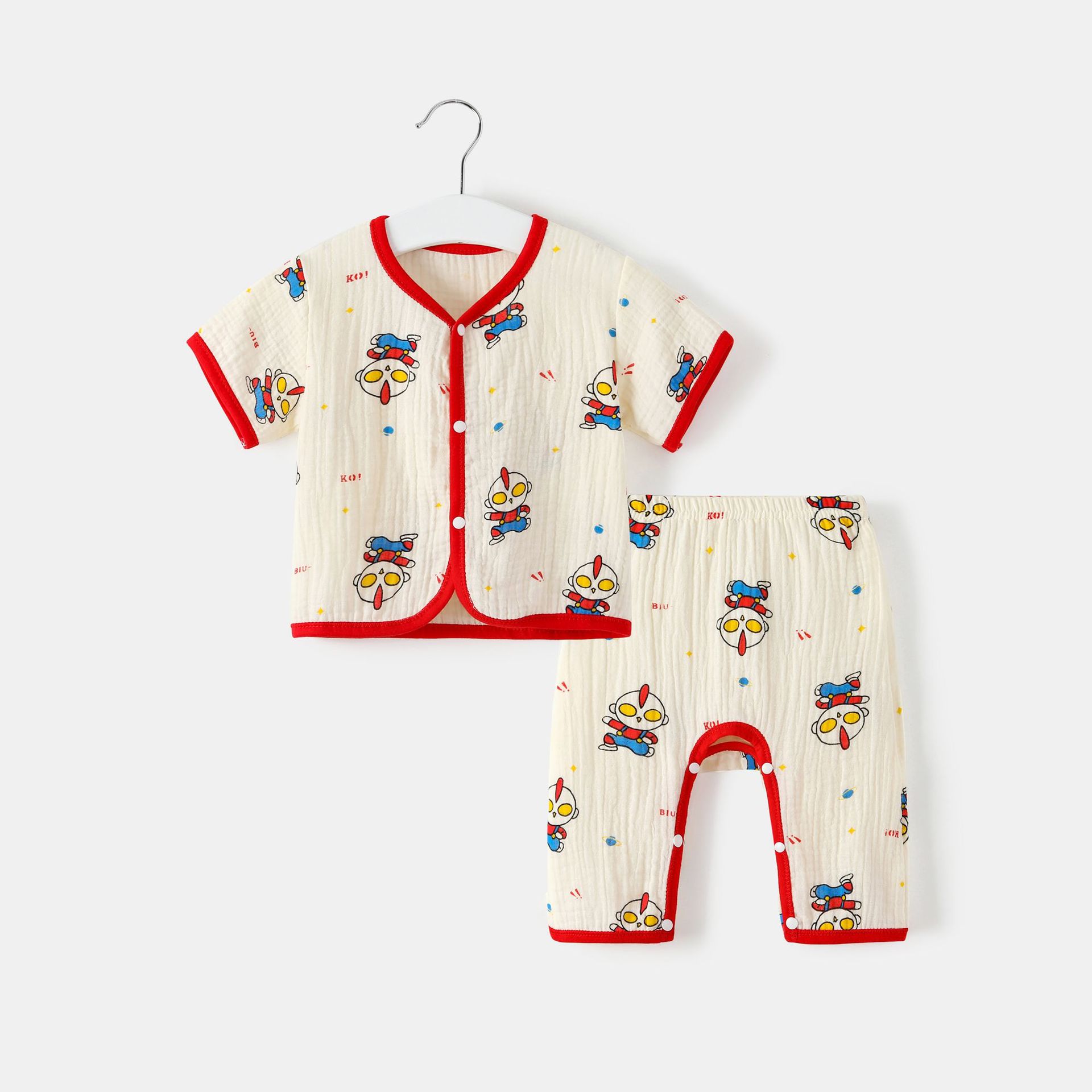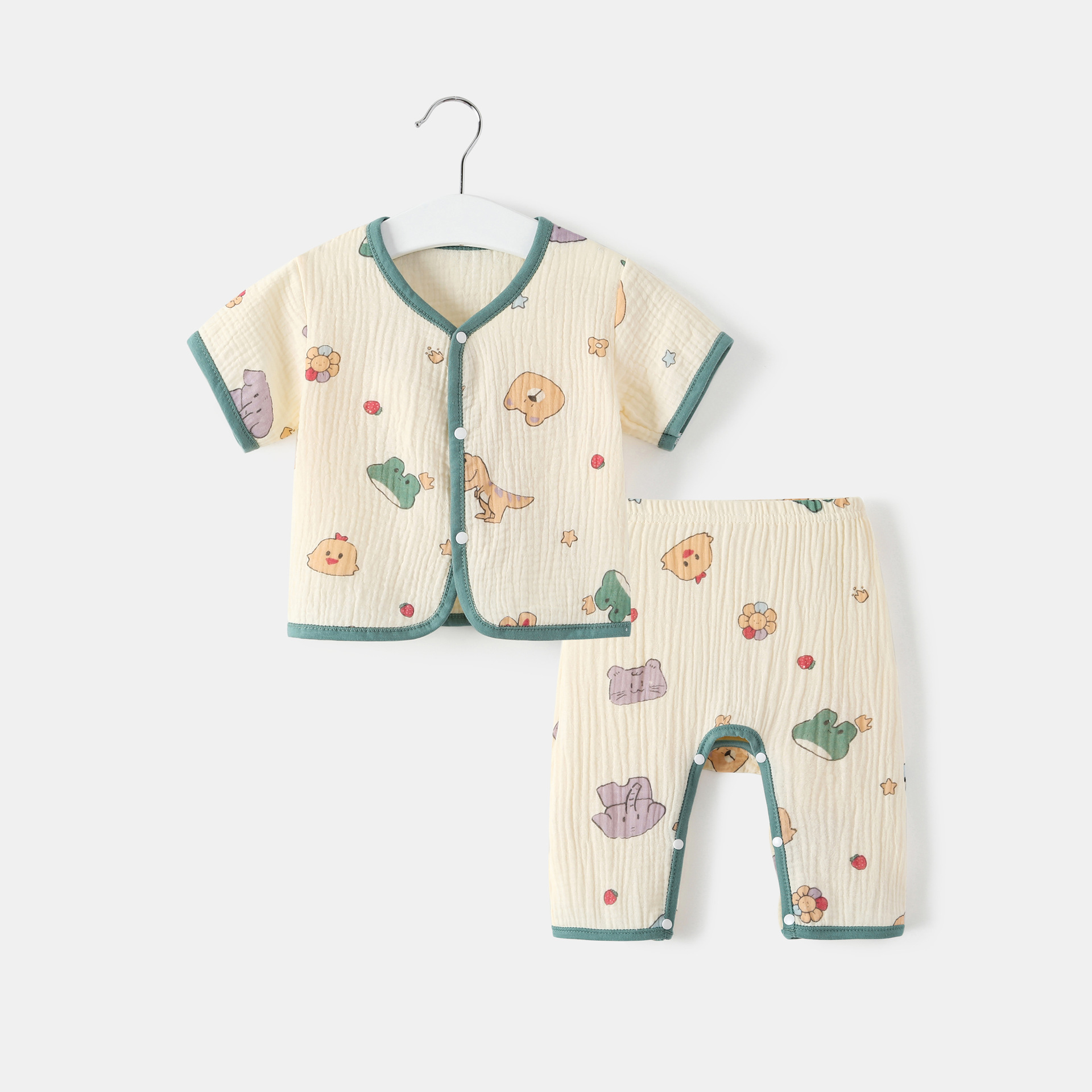 아기 여름 반팔 거즈 세트 순수 코튼 신생아 클래스 얇은 분할 어린이 여름 옷 아기 옷 홈 옷