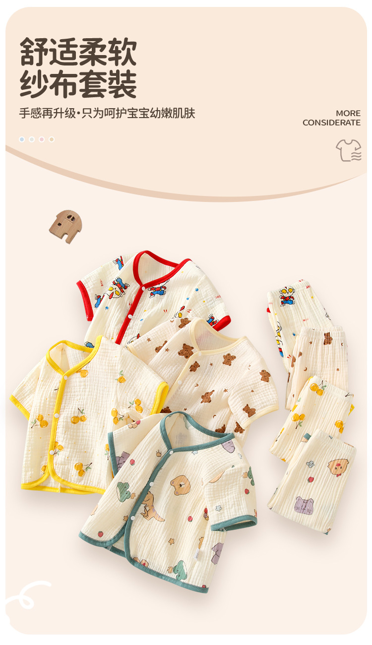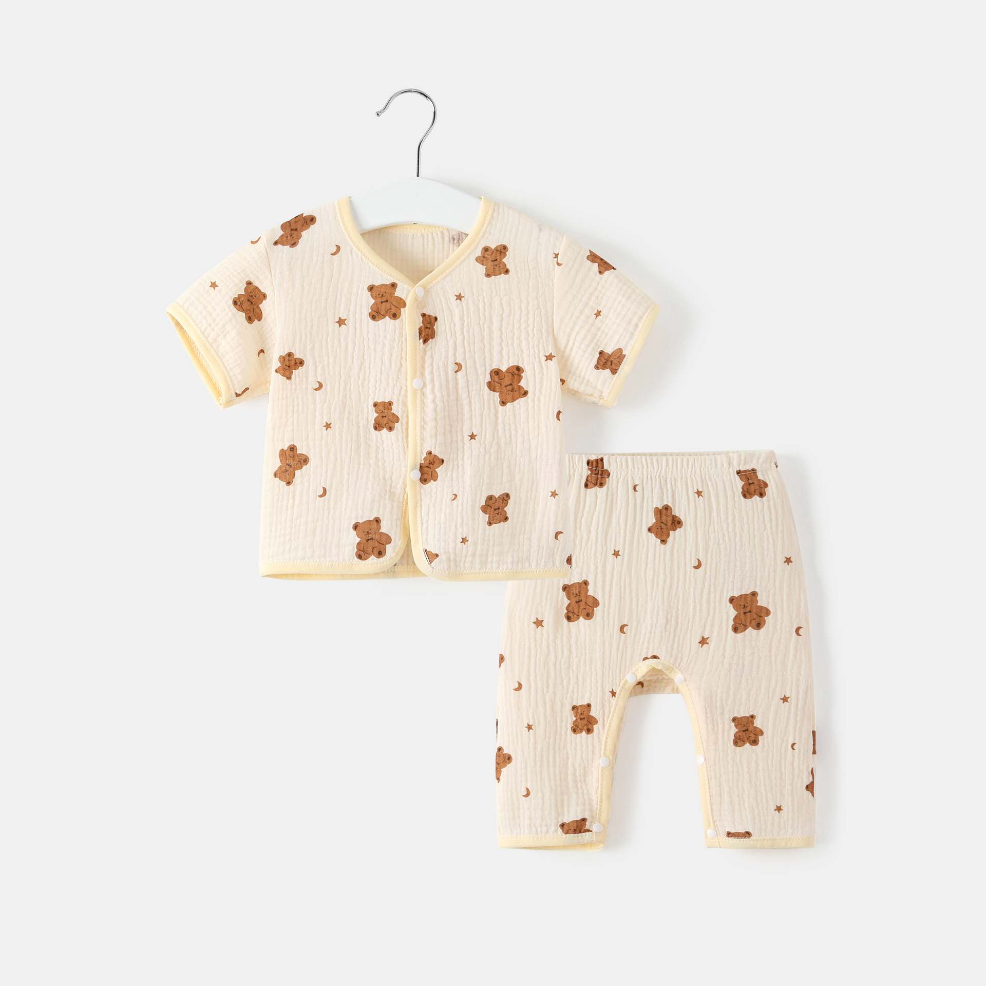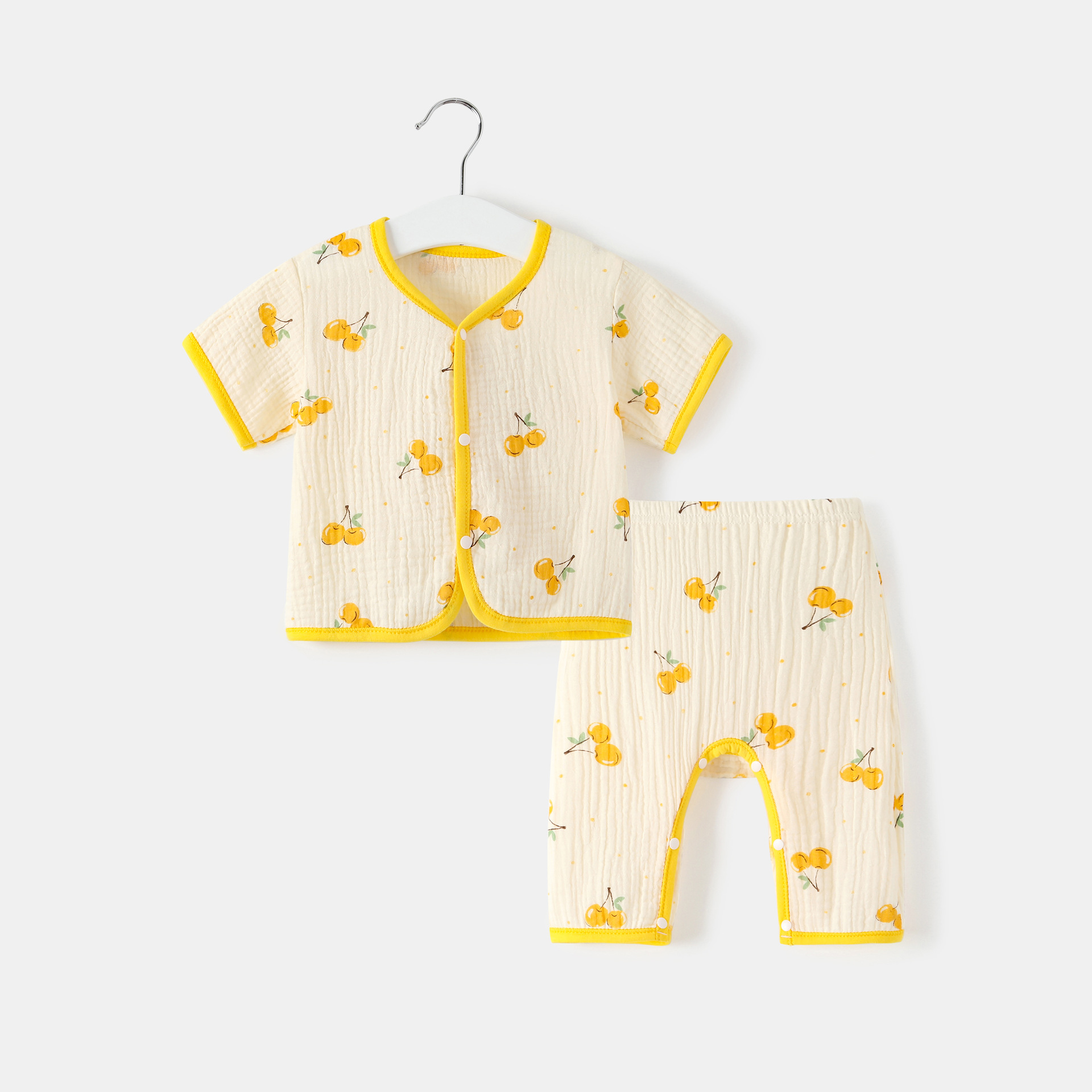 아기 여름 반팔 거즈 세트 순수 코튼 신생아 클래스 얇은 분할 어린이 여름 옷 아기 옷 홈 옷스토어 가기