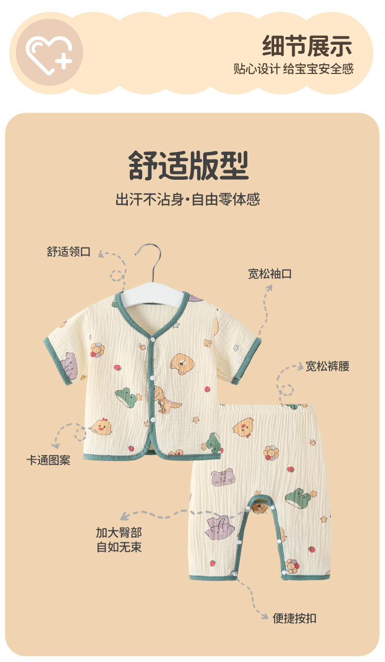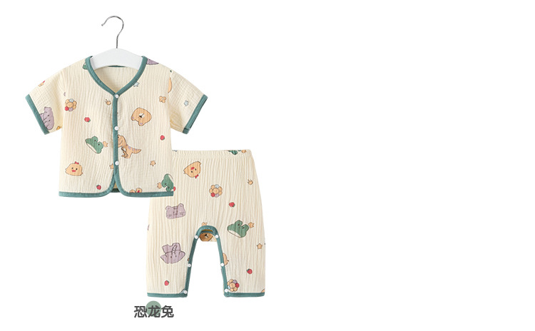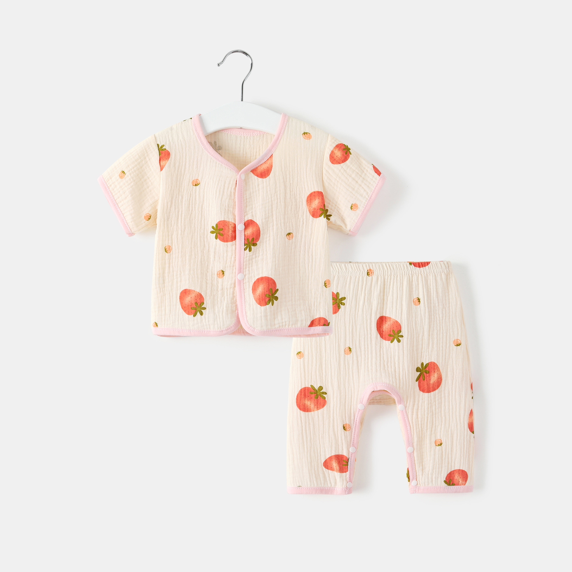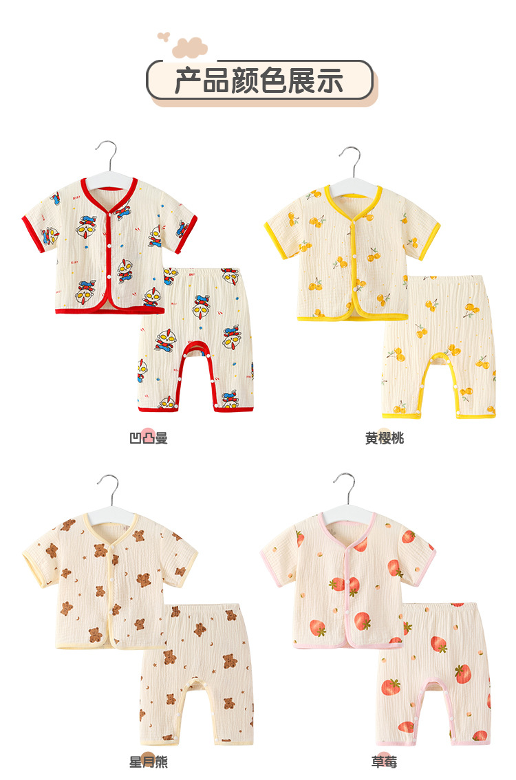 아기 여름 반팔 거즈 세트 순수 코튼 신생아 클래스 얇은 분할 어린이 여름 옷 아기 옷 홈 옷스토어 가기