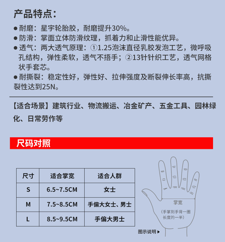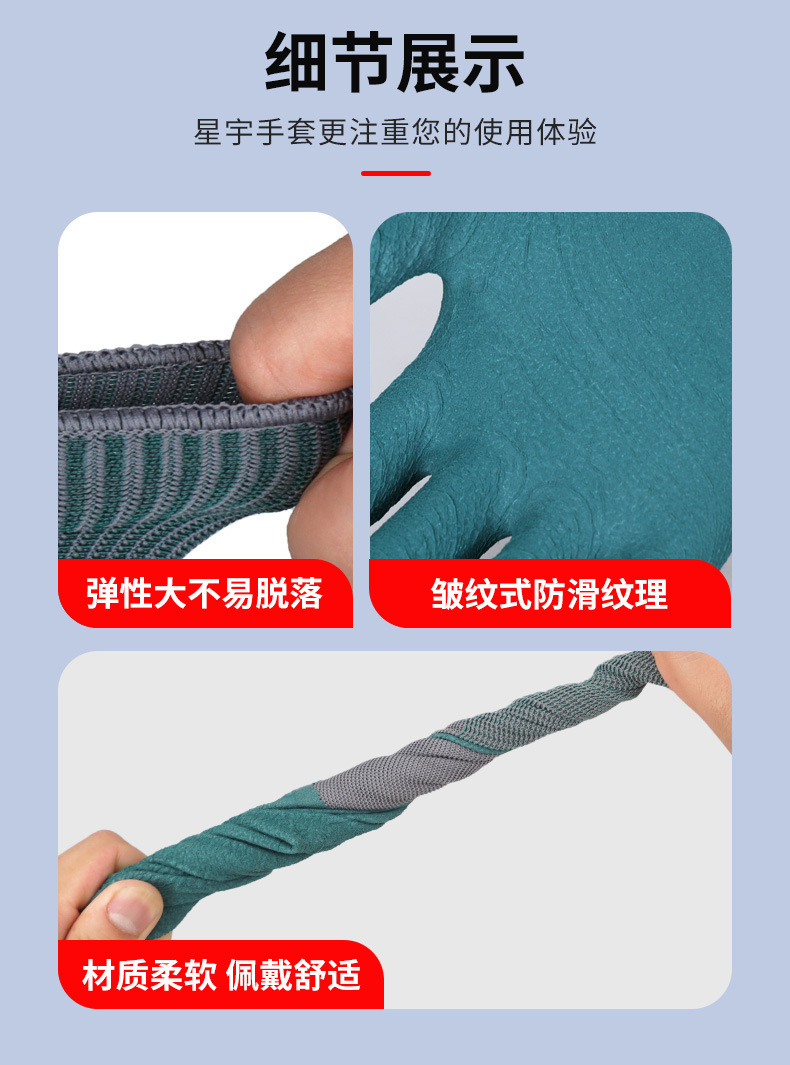 Xingyu 타이어 고무 장갑은 튼튼한 내마모성 미끄럼 방지 건설 현장 작업 취급 보호 장갑스토어 가기