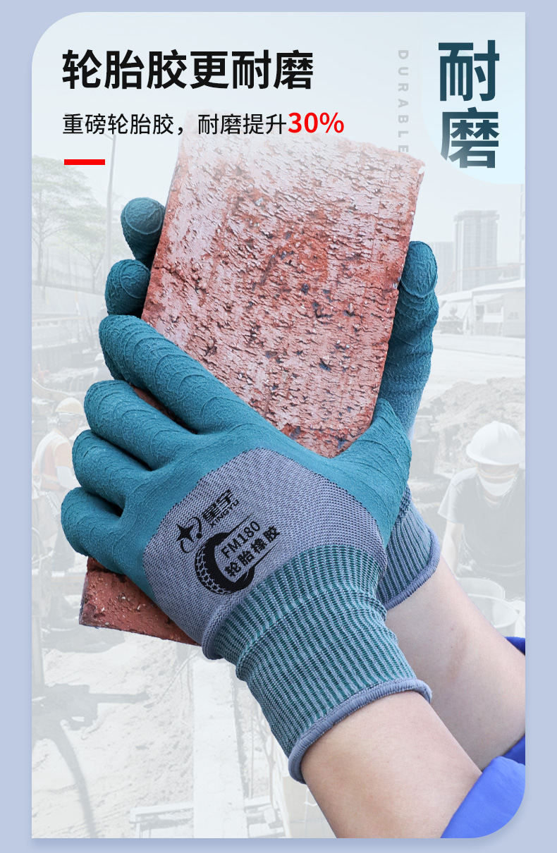 Xingyu 타이어 고무 장갑은 튼튼한 내마모성 미끄럼 방지 건설 현장 작업 취급 보호 장갑
