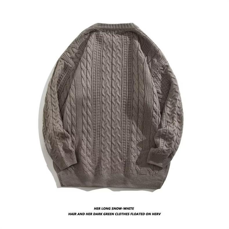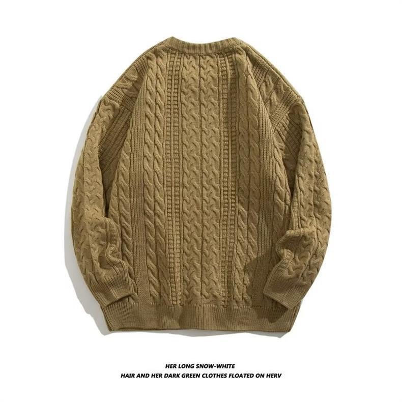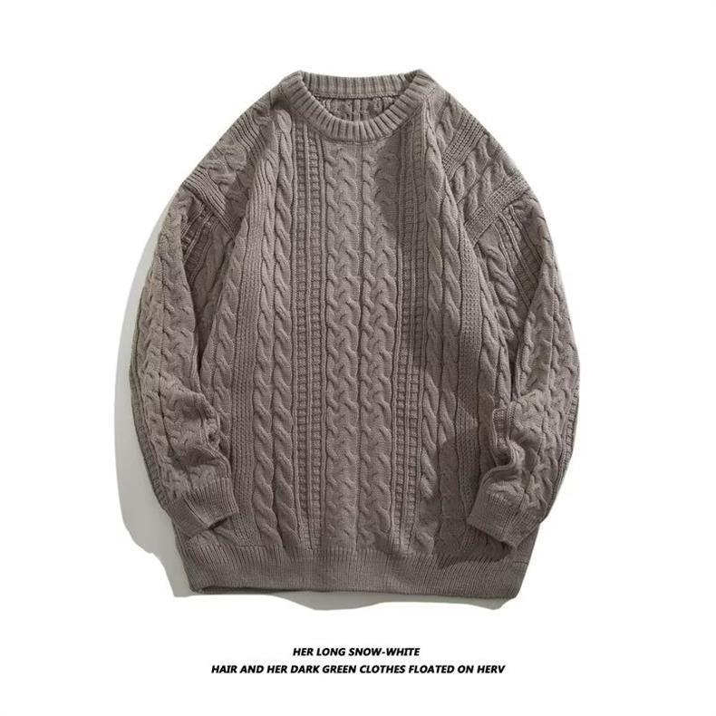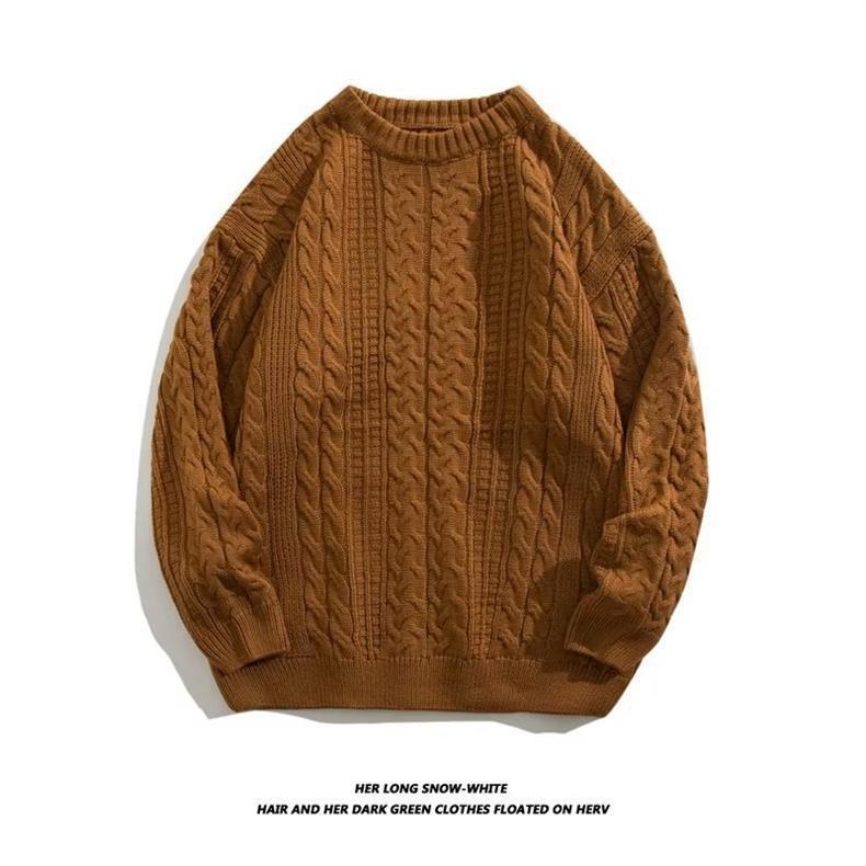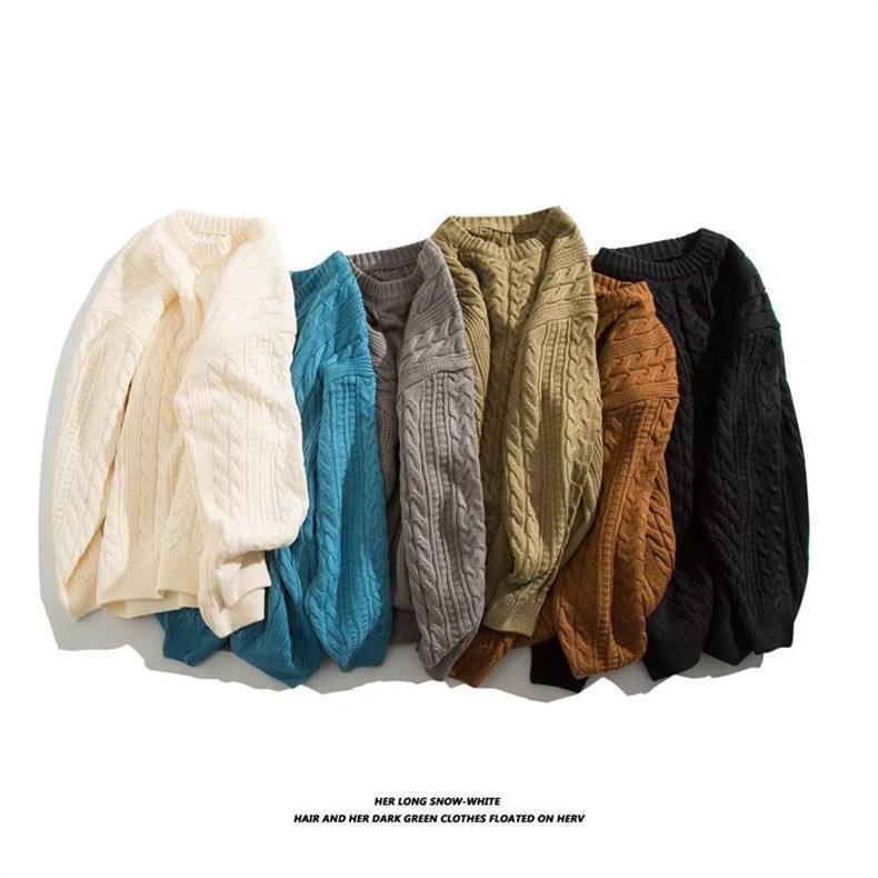 가을 겨울 남성용 라운드 넥 트위스트 스웨터 일본 트렌디 브랜드 루즈 레이지 스타일 다용도 트렌디 솔리드 컬러 풀오버 스웨터스토어 가기