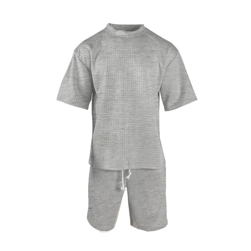 새로운 국경 남성 스포츠 레저 세트 단색 라운드 넥 티셔츠 반바지 2 개 세트 패션 남성 여름 세트