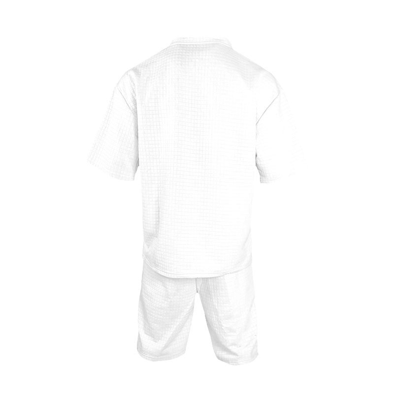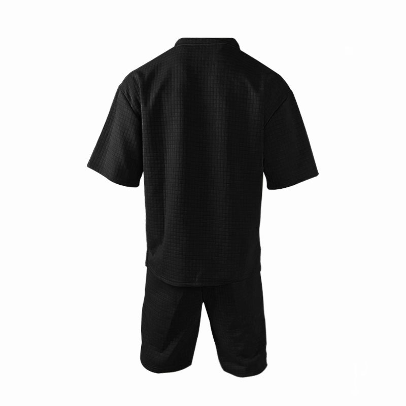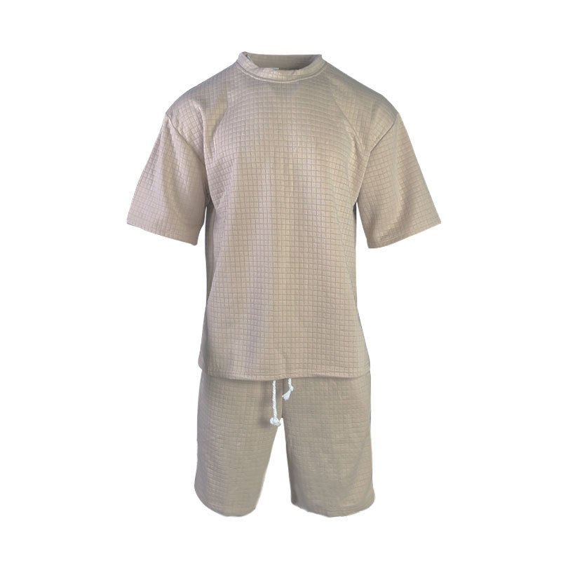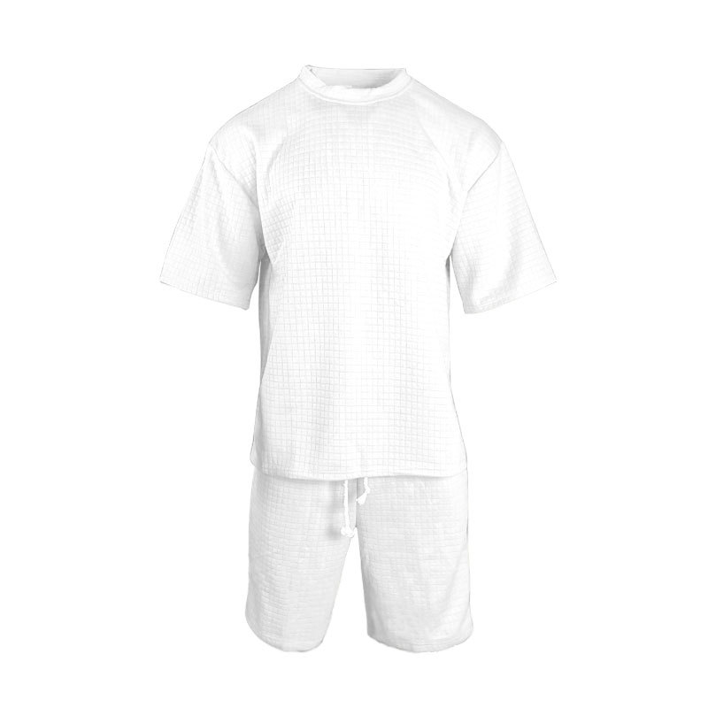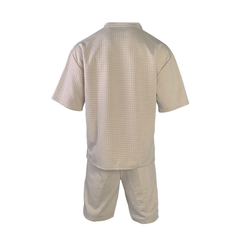 面料成分,百分百涤纶 面料名称,提花小方格 面料平方克重,240克 织造工艺,针织 是否弹力,微弹 产品风格,美式夏季男士重磅POLO衫短袖套装 成品重量S:580 M:620 L:660 XL:690 XXL:740 XXXL:760