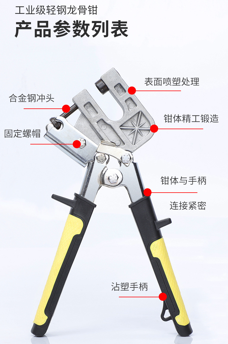 장식 도구 10 인치 가벼운 강철 용골 집게 산업 등급 높은 경도 리벳이없는 수동 유압 드릴링 용골 집게스토어 가기