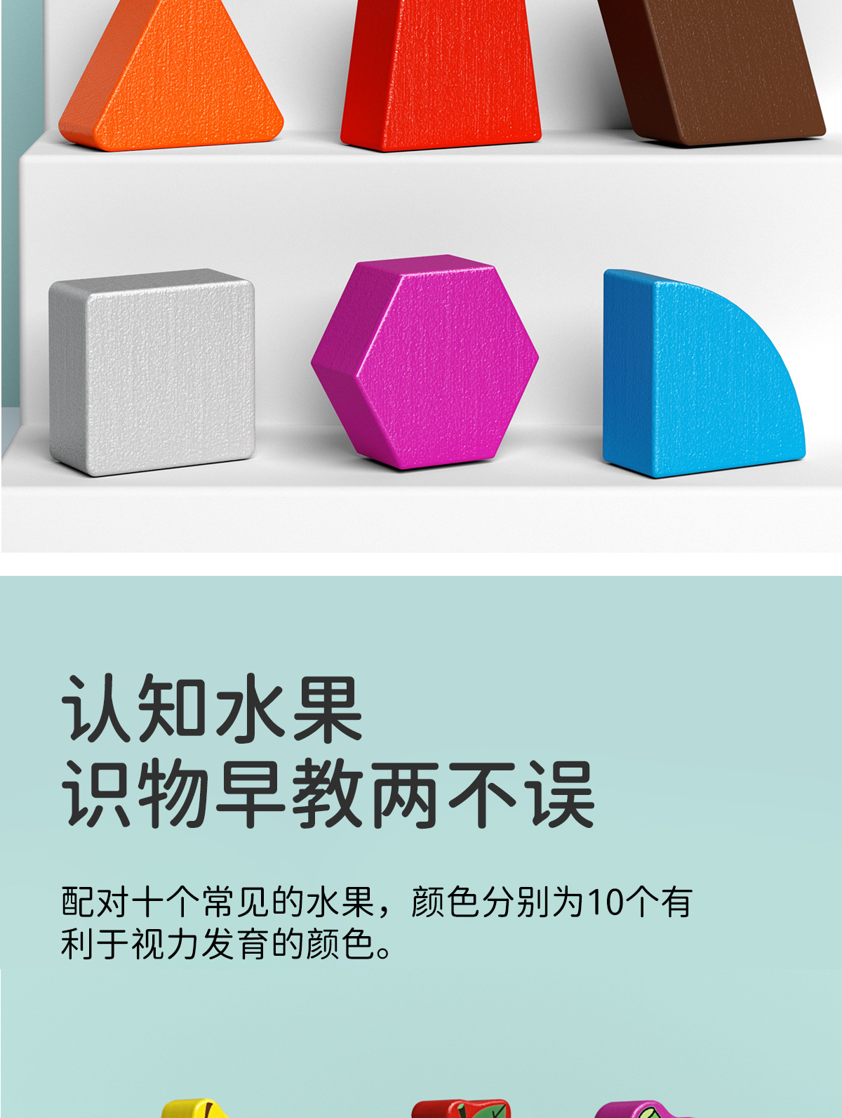 • 4-in-1 과일 모형 [숫자 + 과일 + 반지 + 동물 인식] + 기하학적 기둥 5세트 [몬테소리 조기 교육]