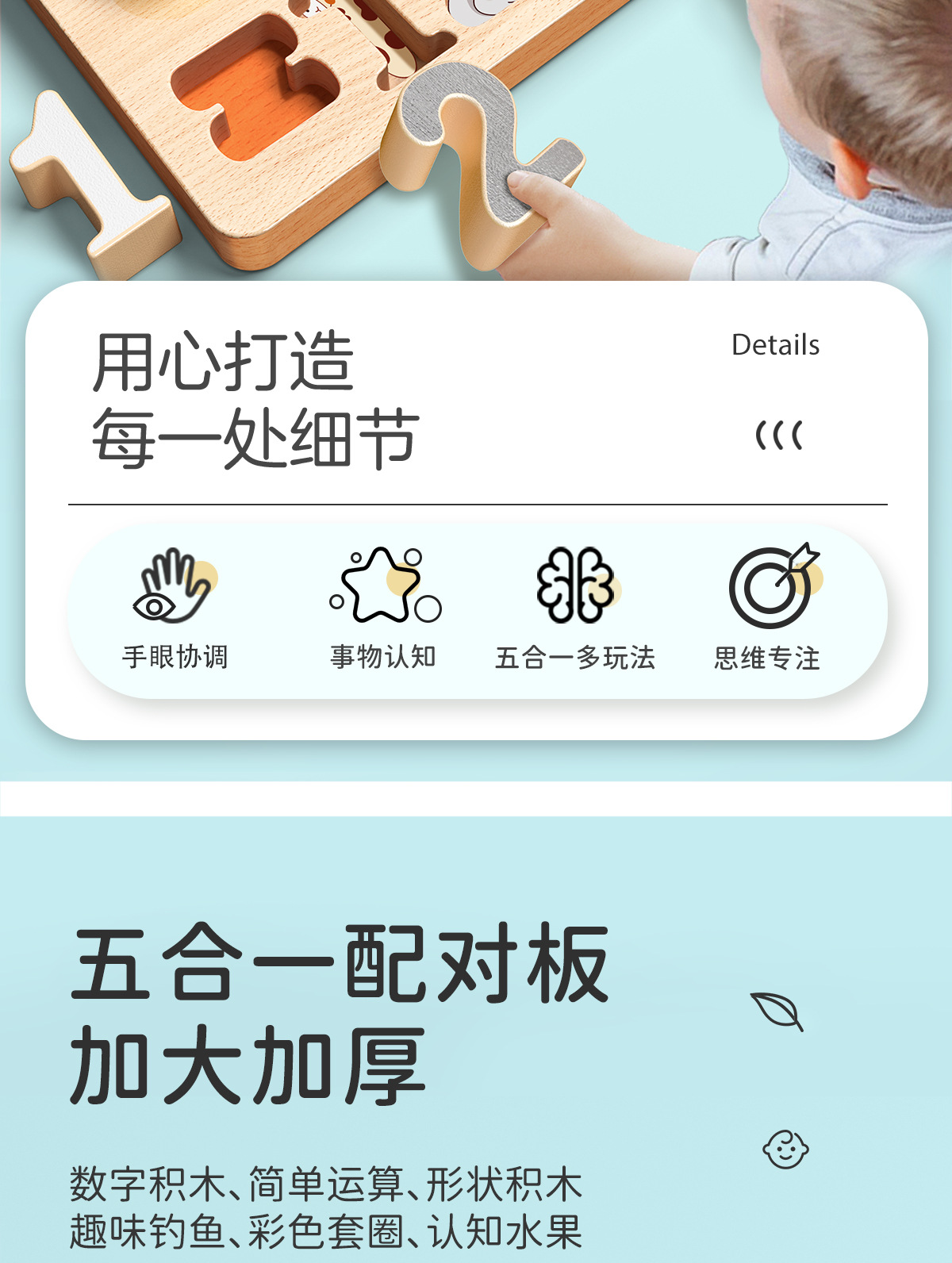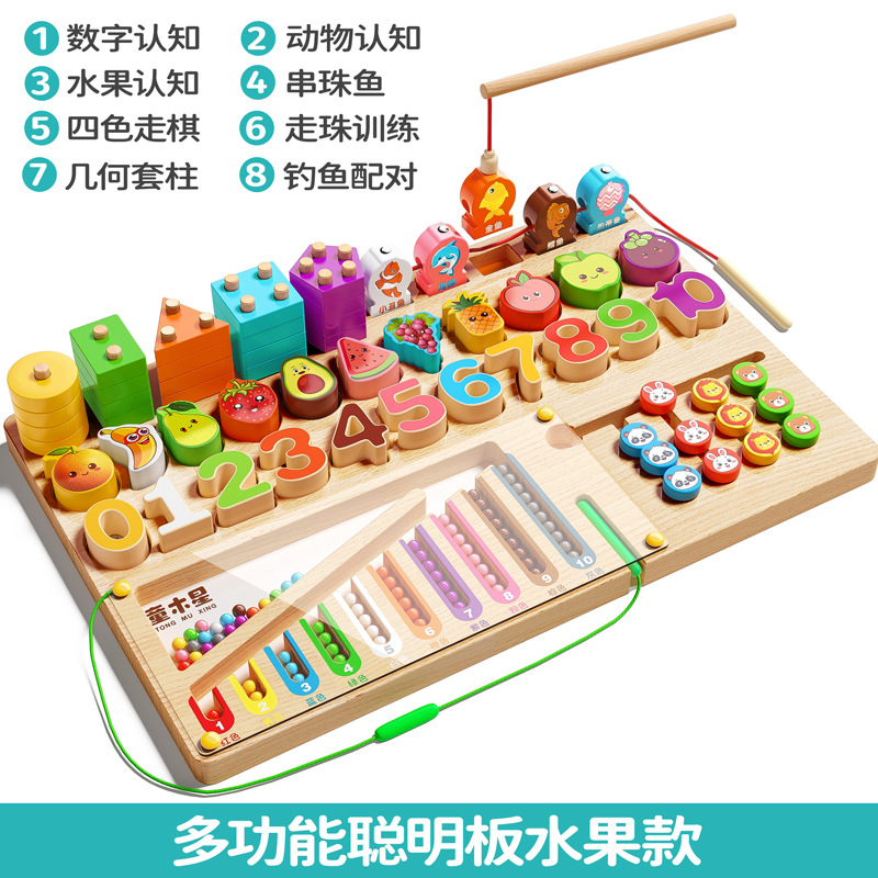 • 8-in-1 몬테소리 스마트보드 [숫자인지 + 동물인지 + 과일인지 + 구슬물고기 + 4색체스 + 구슬걷기훈련 + 기하기둥 + 낚시매칭]