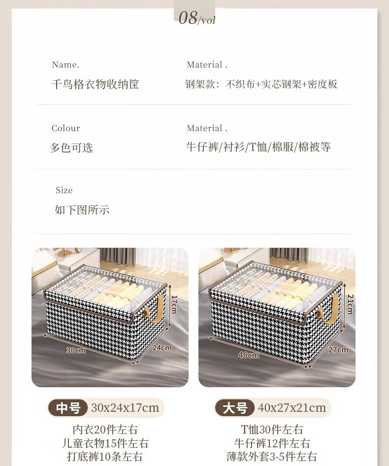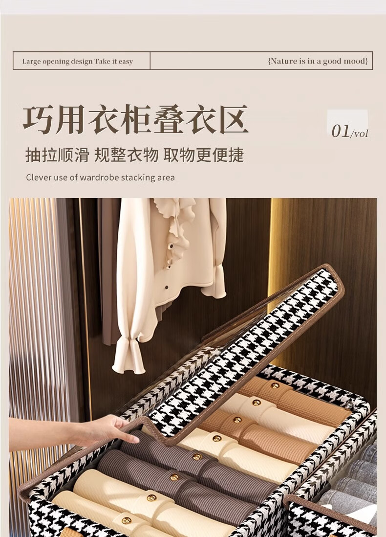 옷 저장 상자 가정용 옷장 옷 뚜껑 접는 저장 바구니 서랍 유형 주최자와 직물 계층화 유물스토어 가기
