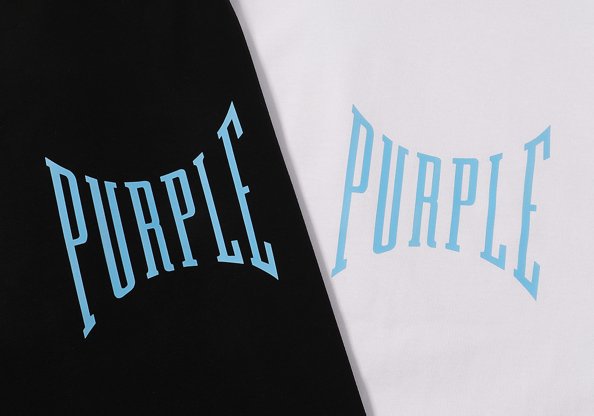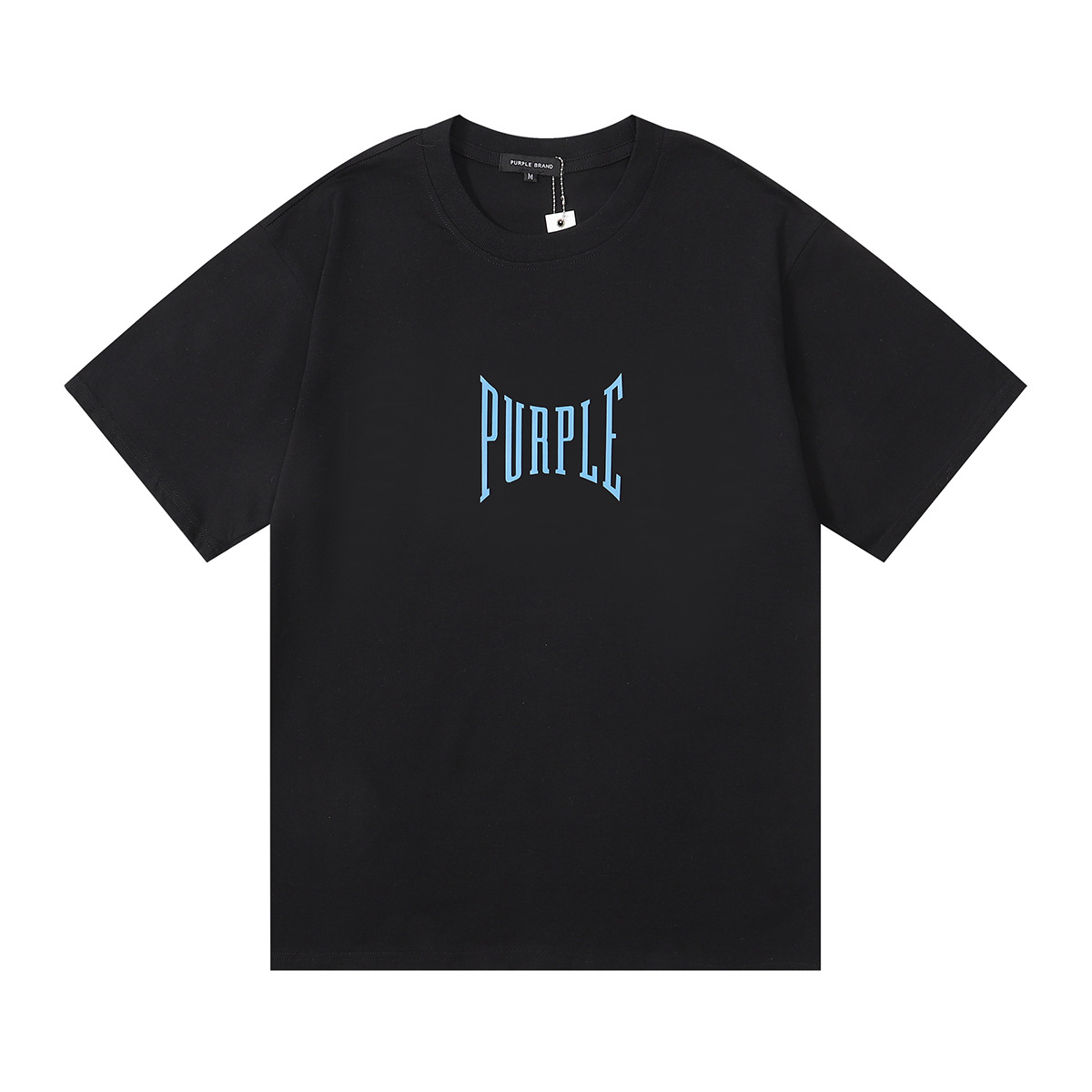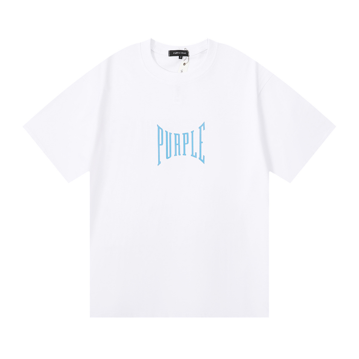 2024SS 보라색 파란색 작은 로고 인쇄 무거운 면 캐주얼 느슨한 반팔 티셔츠스토어 가기