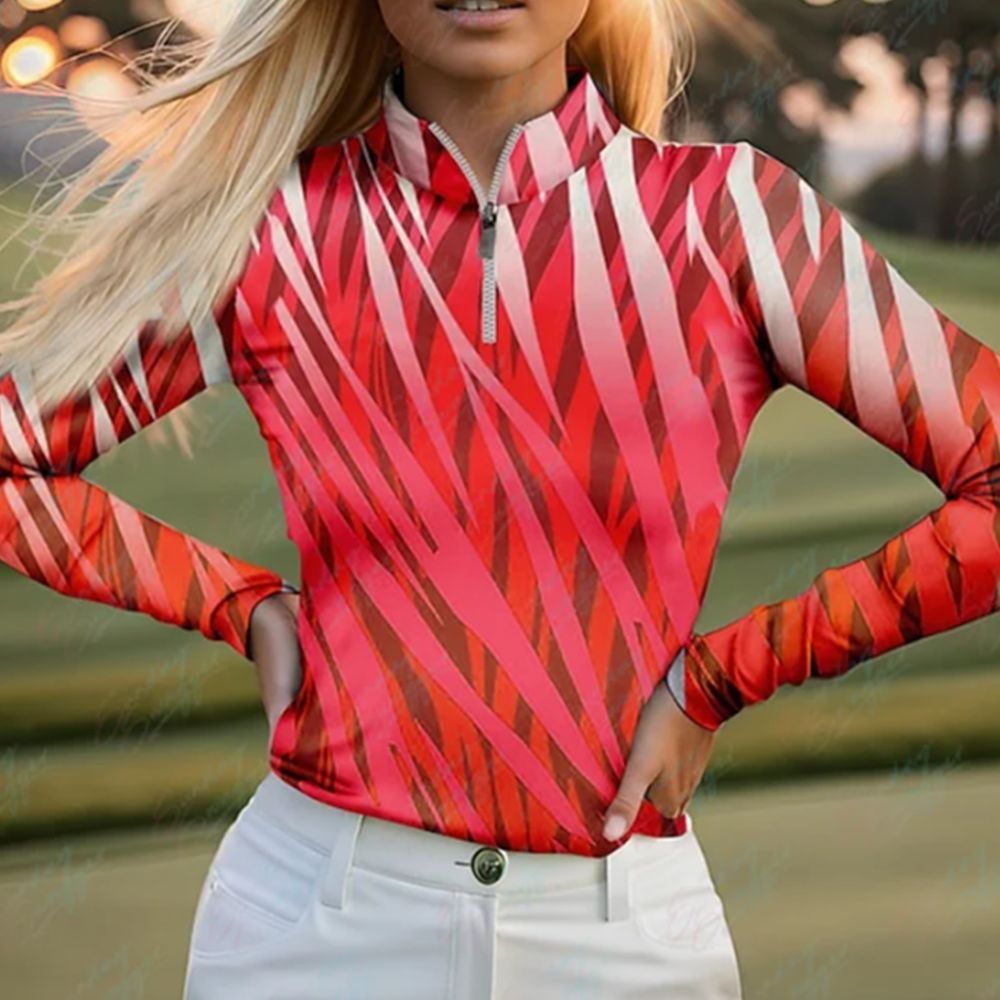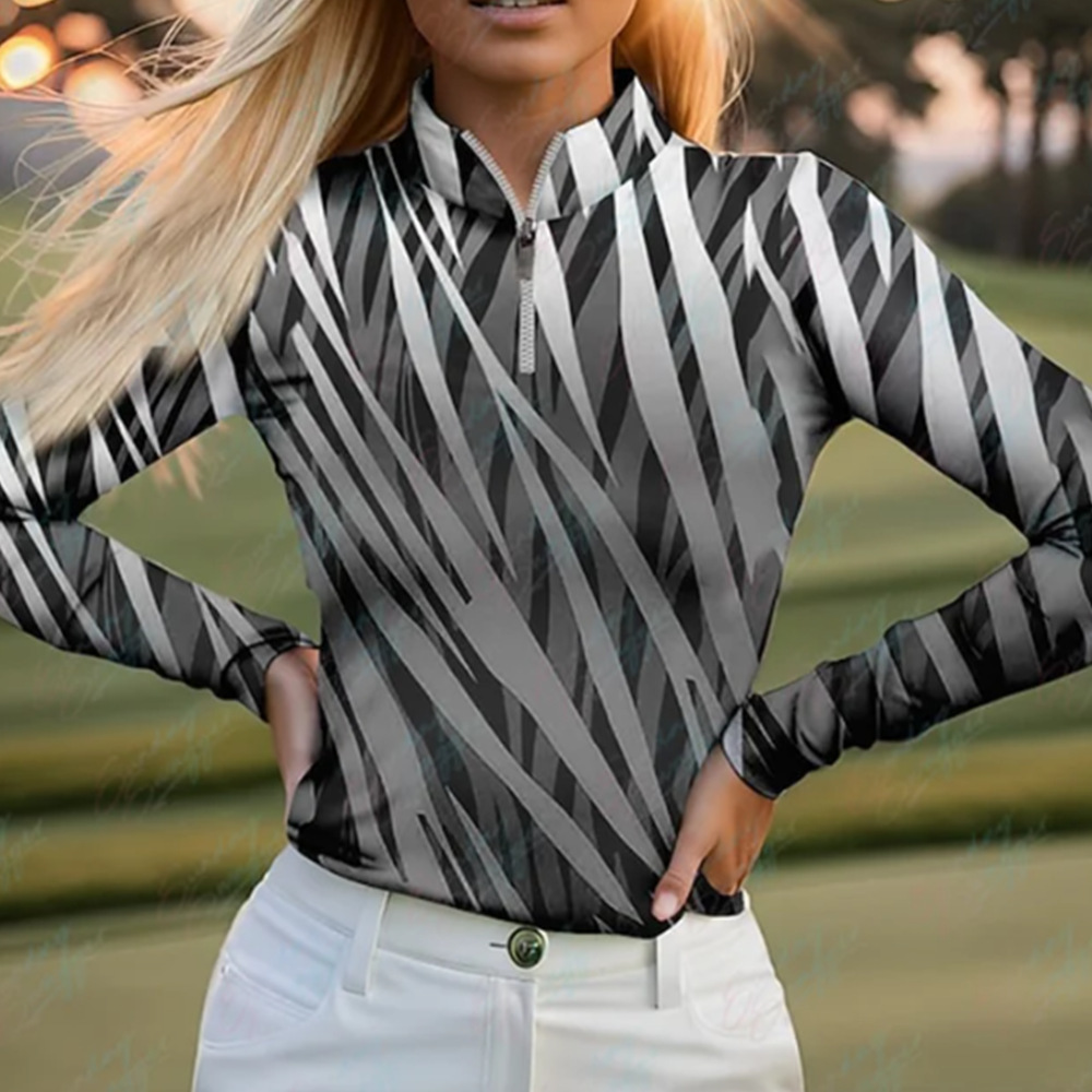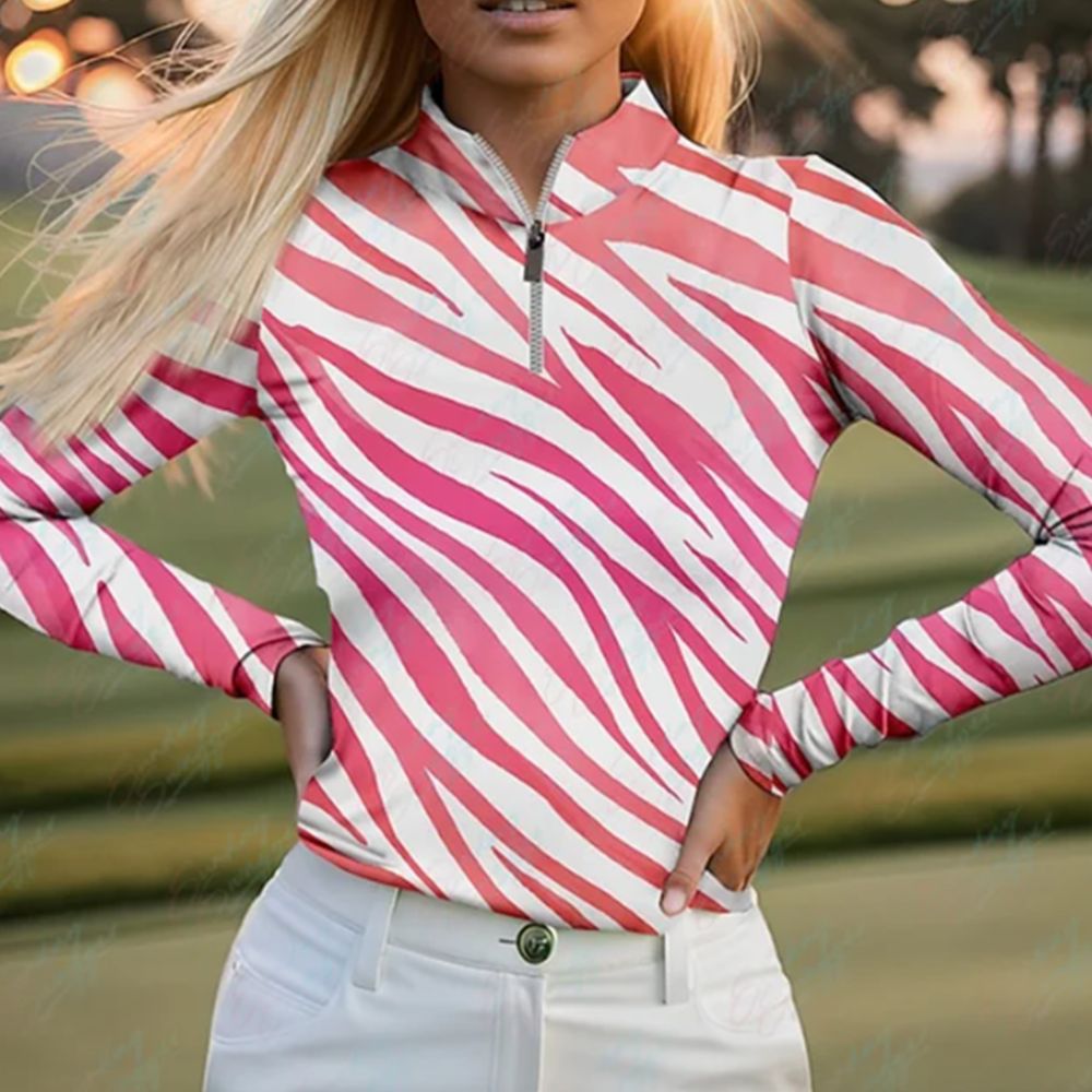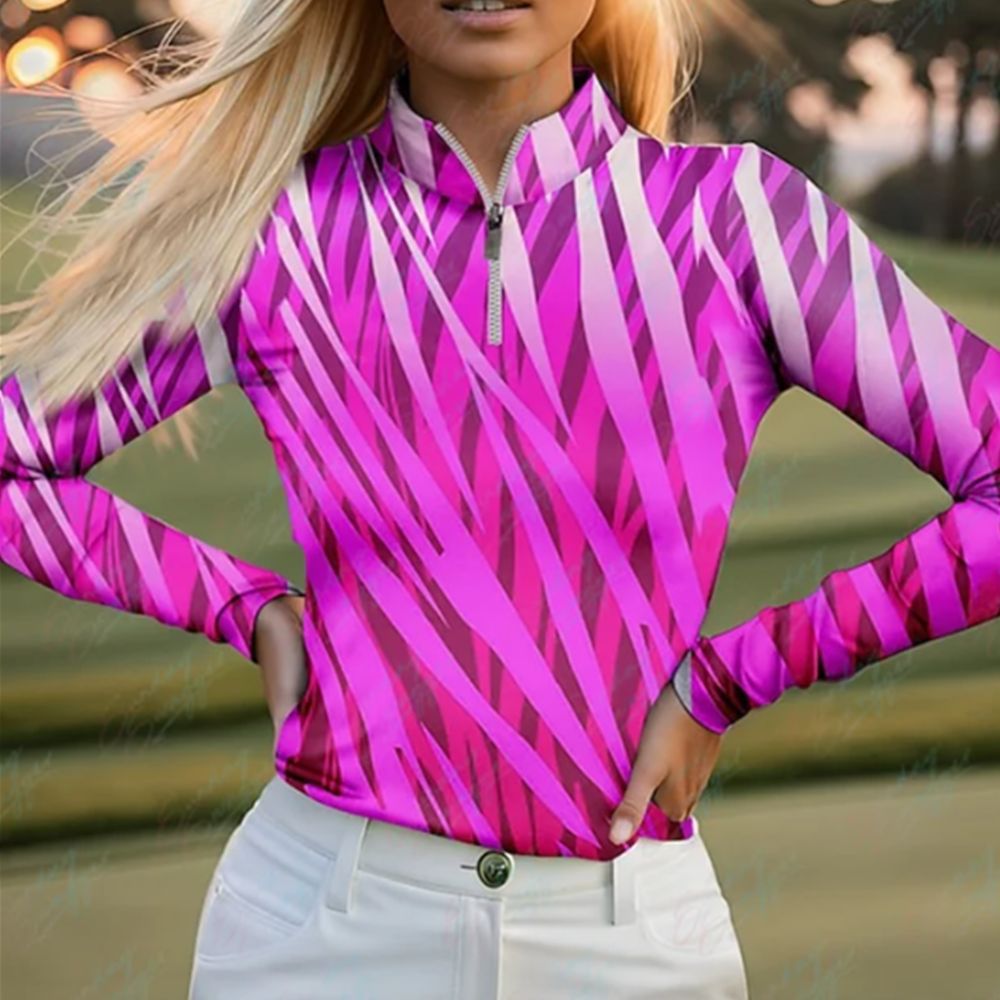 2024 새로운 여자 긴팔 골프 클럽 가을과 겨울 줄무늬 골프 통기성 빠른 건조 골프 폴로 셔츠