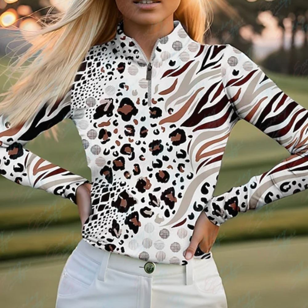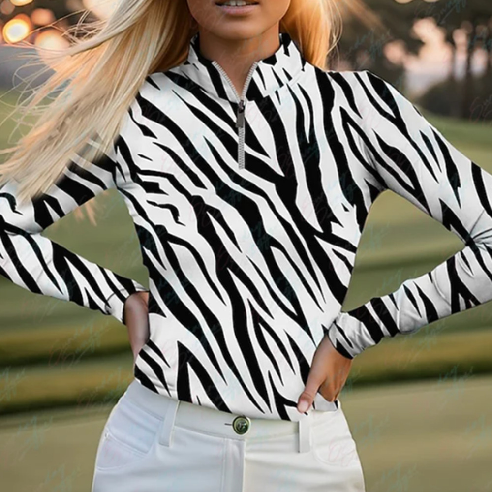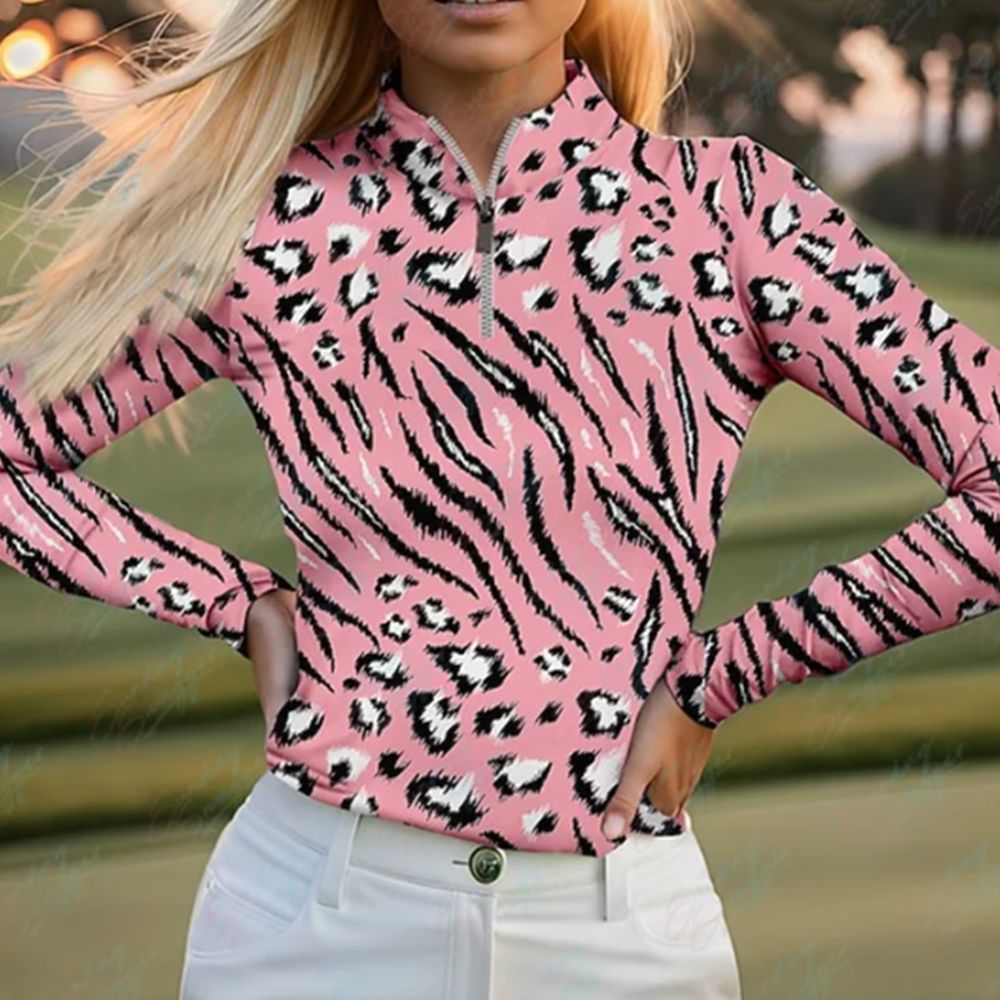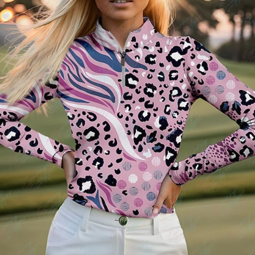 2024 새로운 여자 긴팔 골프 클럽 가을과 겨울 줄무늬 골프 통기성 빠른 건조 골프 폴로 셔츠