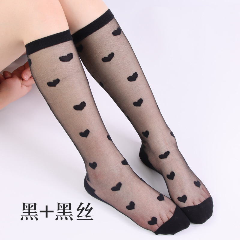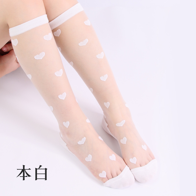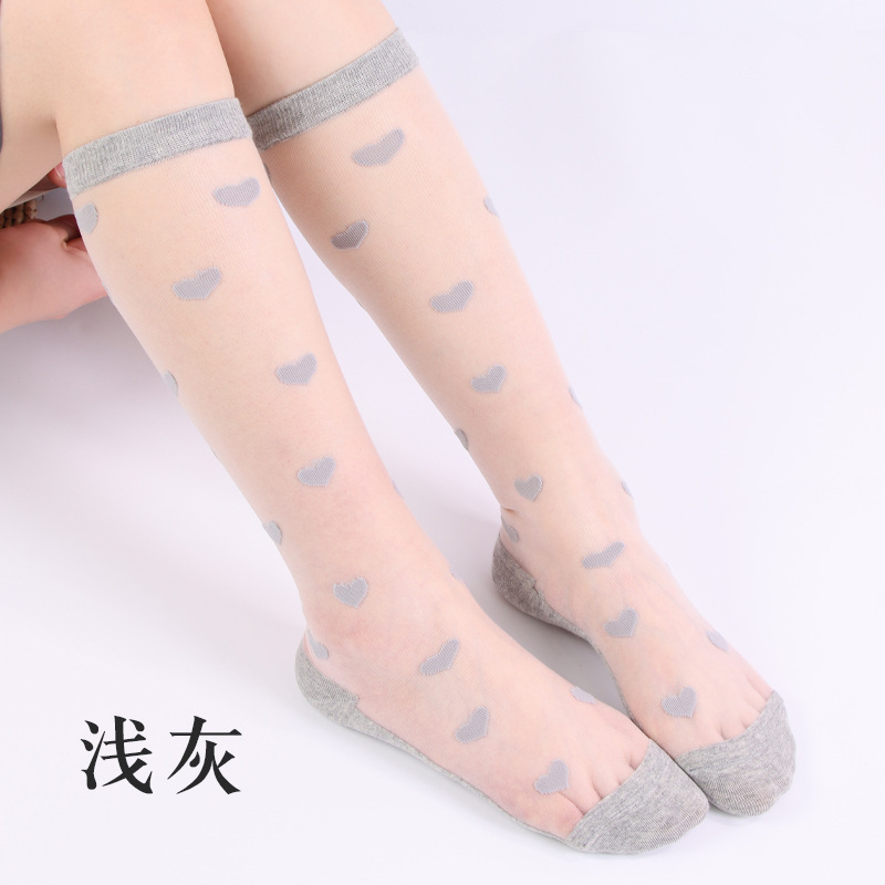 양말 여성의 봄과 여름 양말 맞춤형 면화 바닥 스타킹 중반 배럴 사랑 자카드 투명 스타킹 유리 실크 여성 양말