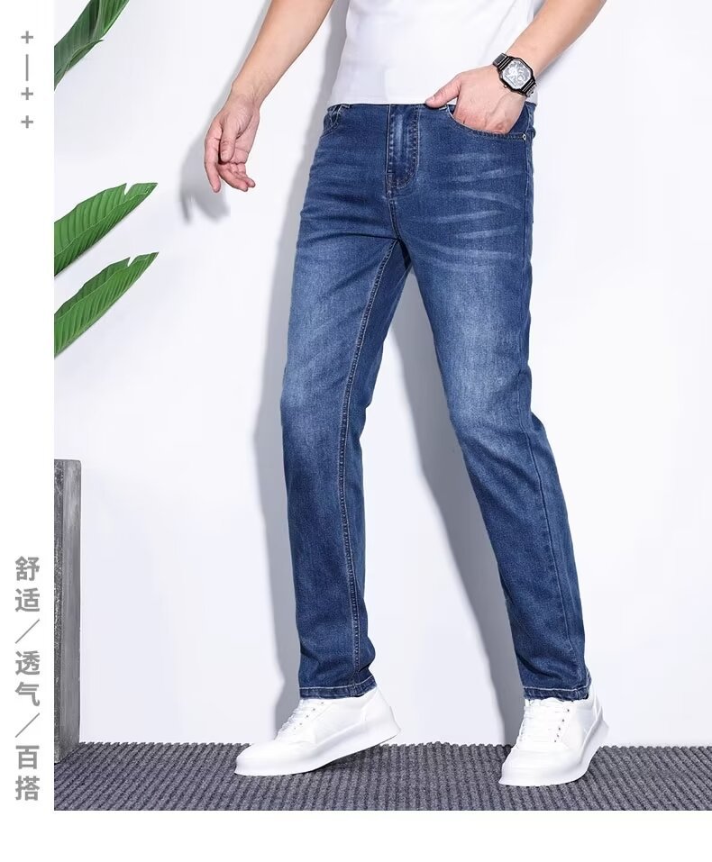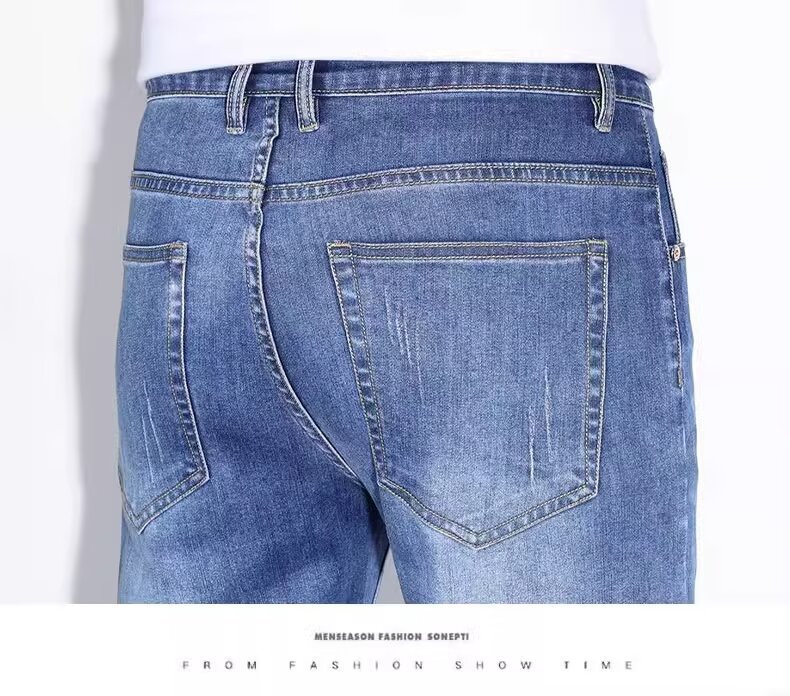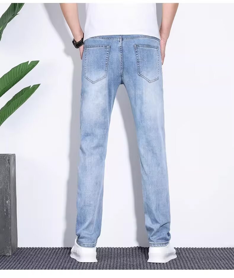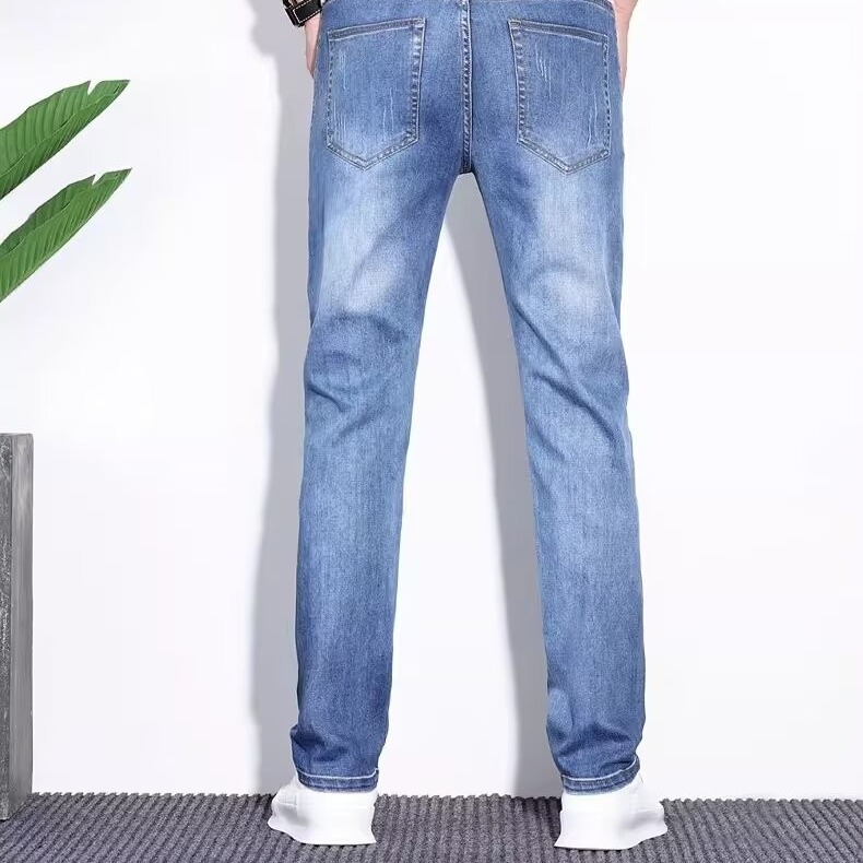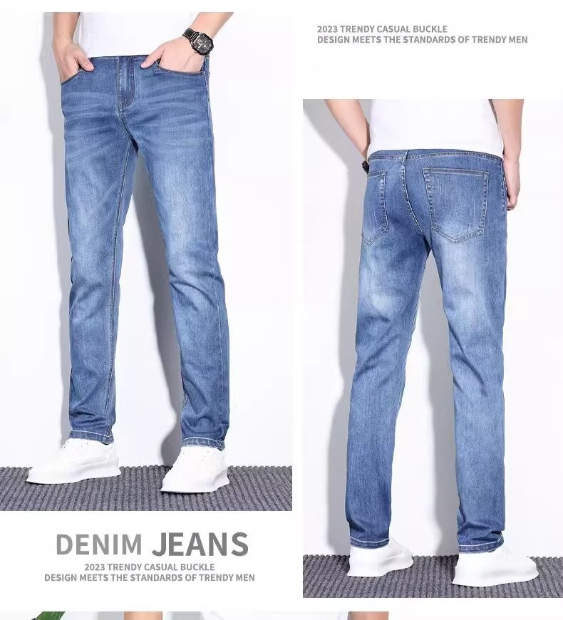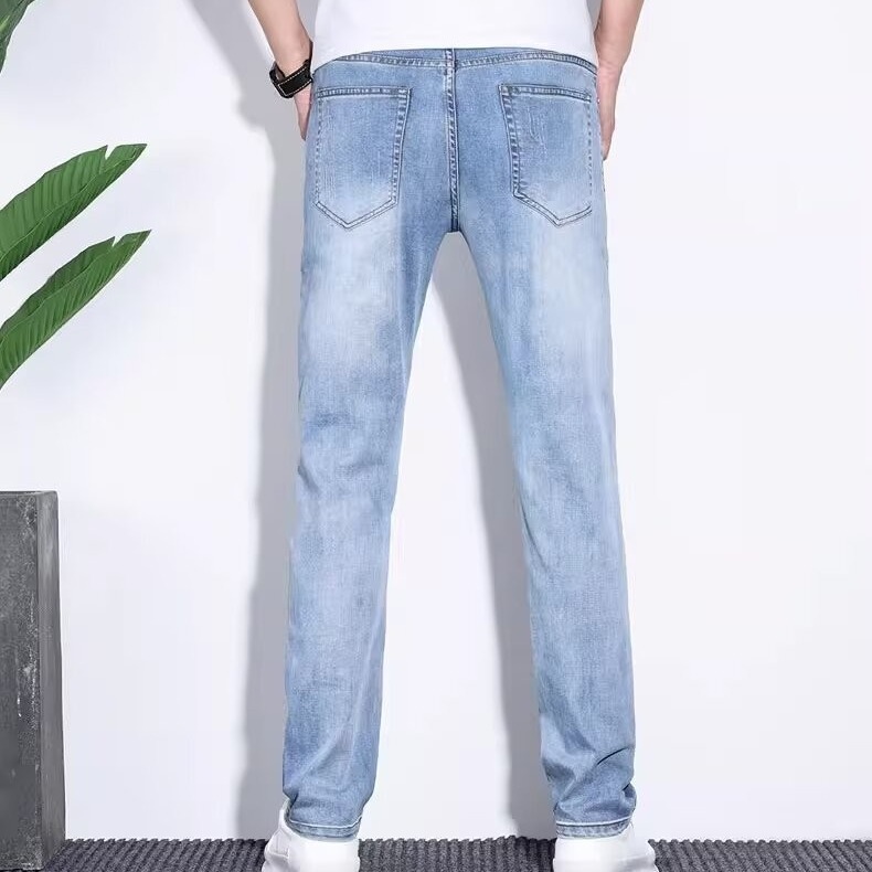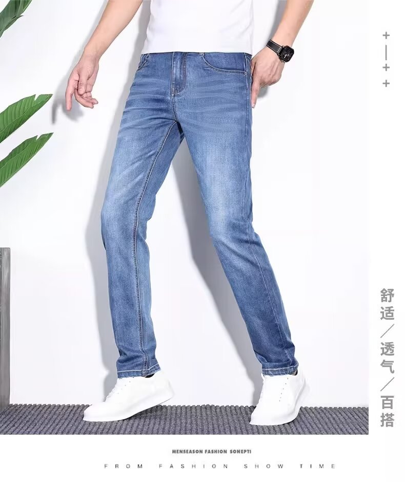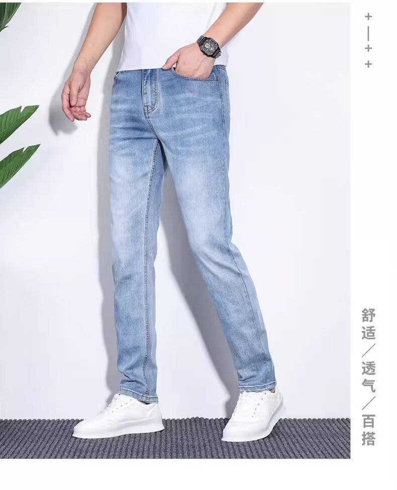 아이스 실크 얇은 스트레치 청바지 남자 여름 슬림 핏 올매치 스트레이트 바지 청소년 마이크로 탄성 편안한 스키니 바지스토어 가기