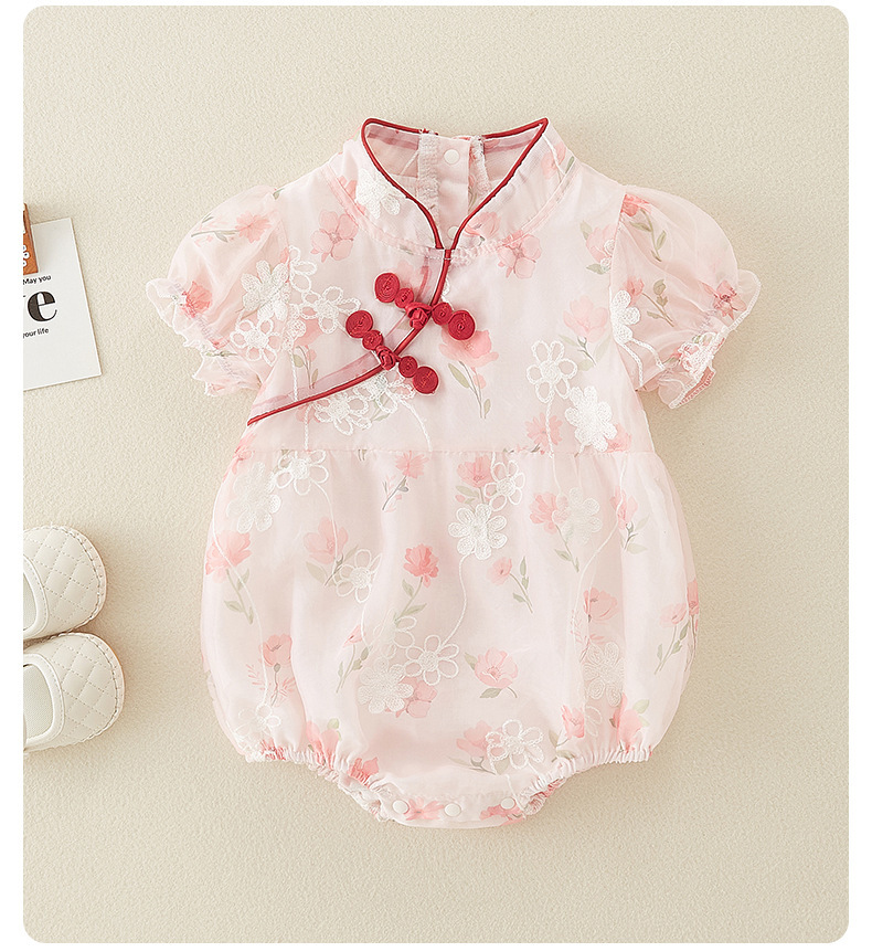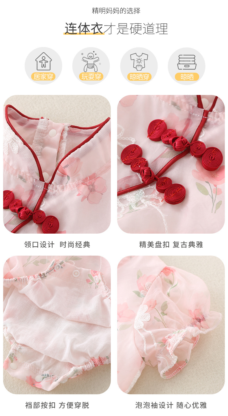 아기 소녀 여름 점프 수트 아기 옷 얇은 반팔 가방 방귀 옷 청삼 새로운 중국 스타일 신생아 복장스토어 가기