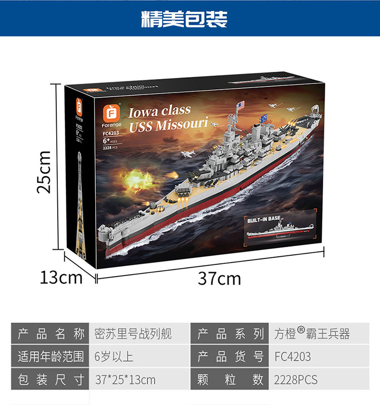 Fang Orange FC4203 전함 미주리 항공기 캐리어 모델 소년 작은 입자 조립 블록 삽입 장난감스토어 가기