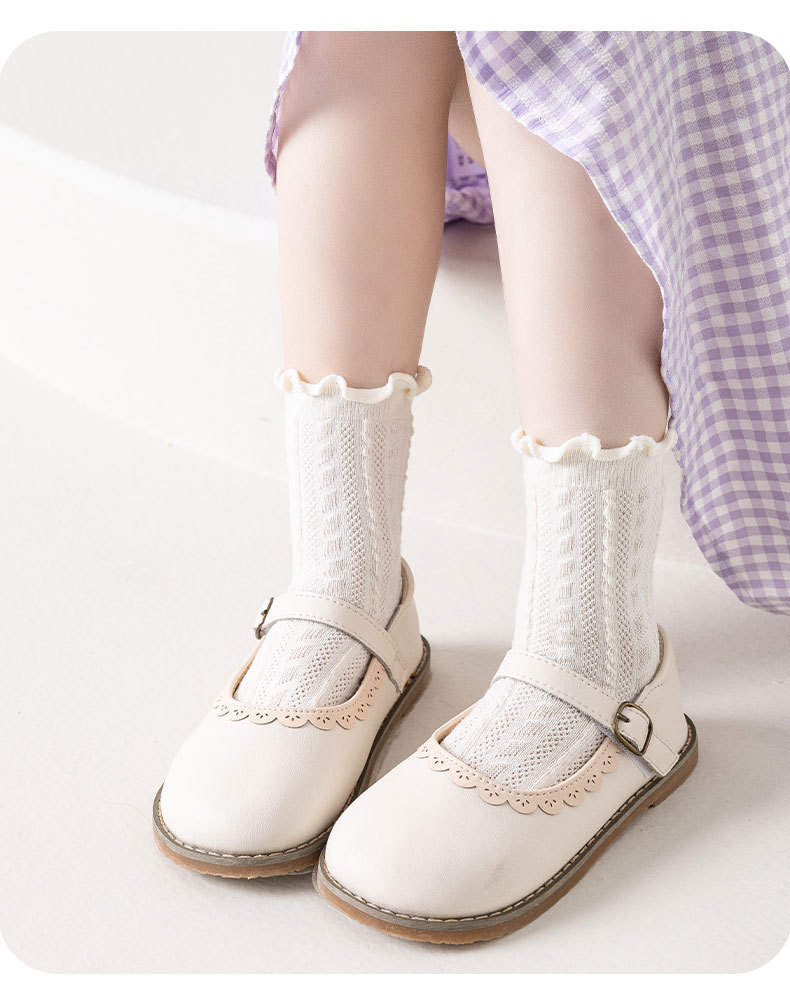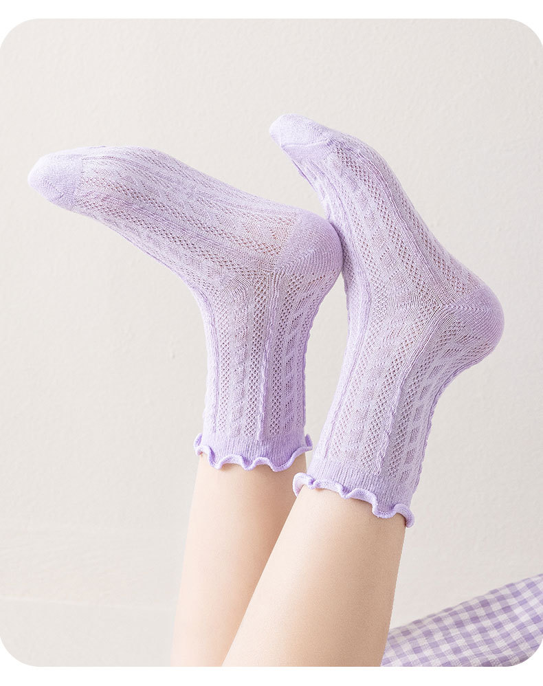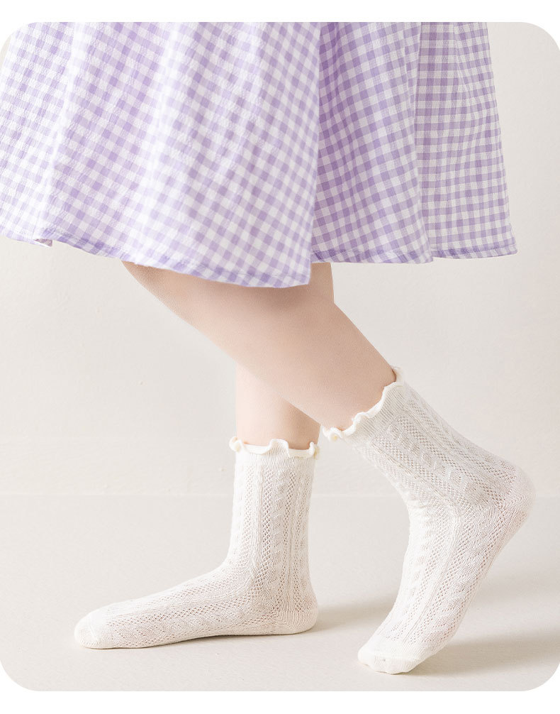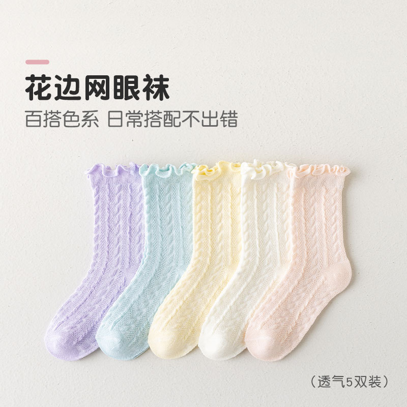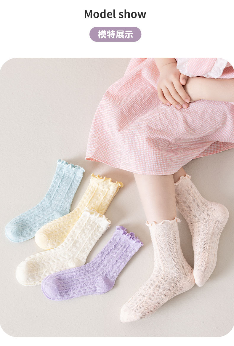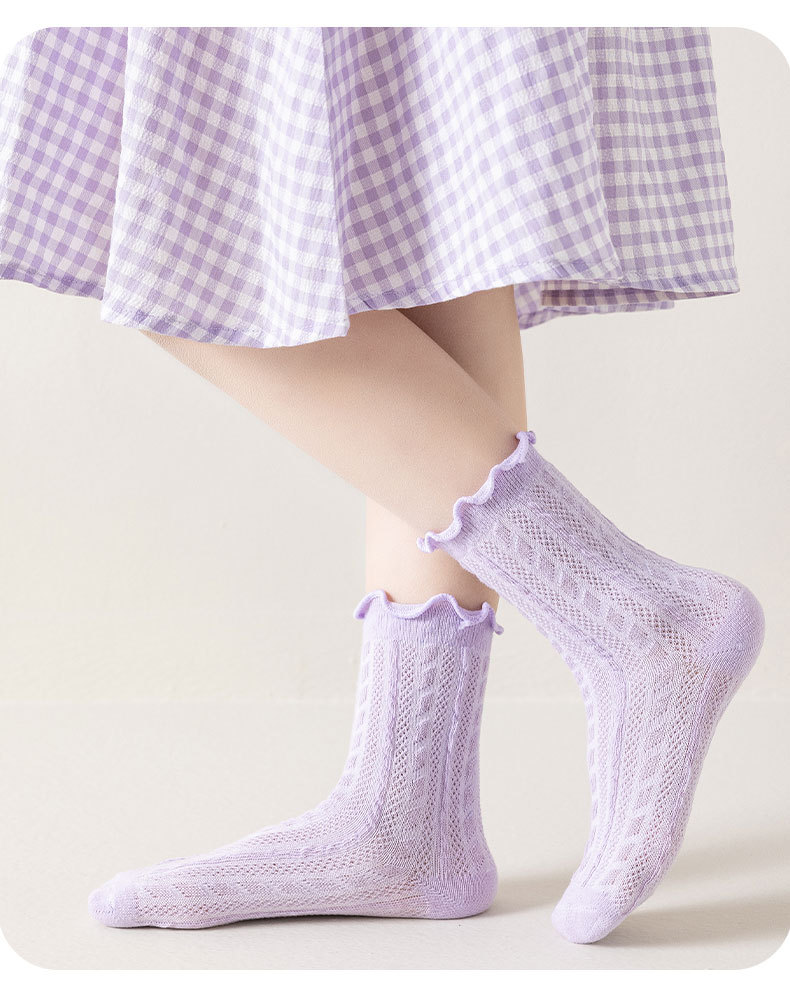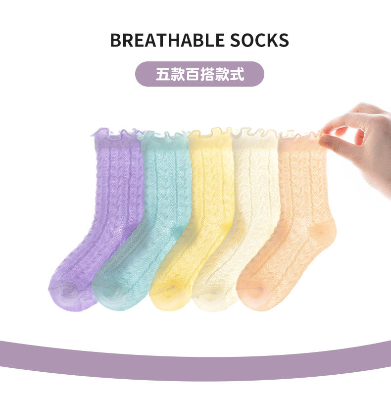 봄과 여름 얇은 메쉬 어린이 양말 캔디 컬러 트위스트 메쉬 걸스 미드 튜브 양말 Auricularia 레이스 프린세스 양말