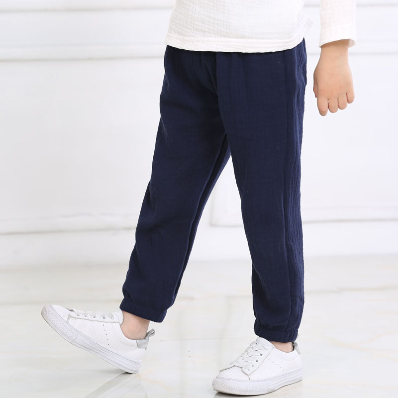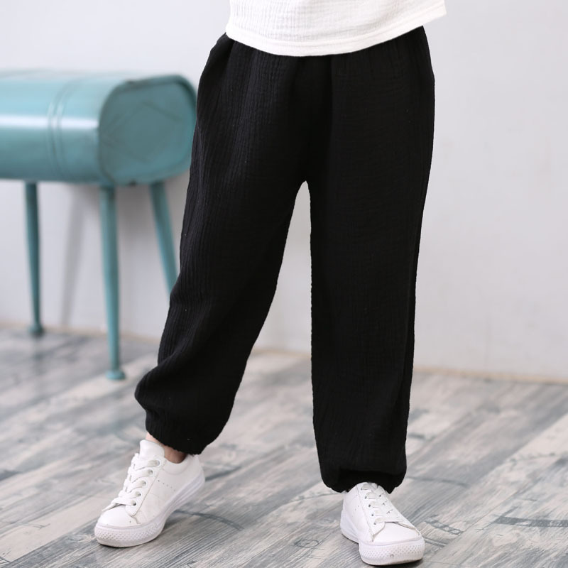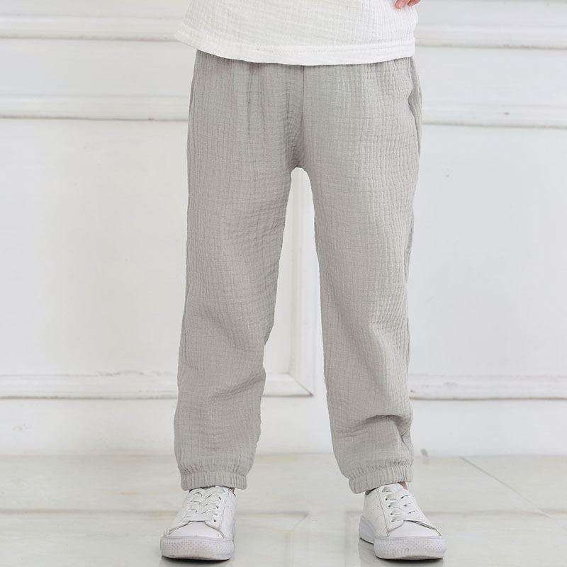 어린이 바지 2024 봄과 가을 얇은 어린이 캐주얼 바지 아동면 및 린넨 솔리드 컬러 안티 모기 바지 통기성 홈 파자마 바지
