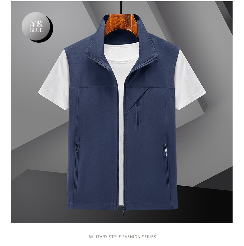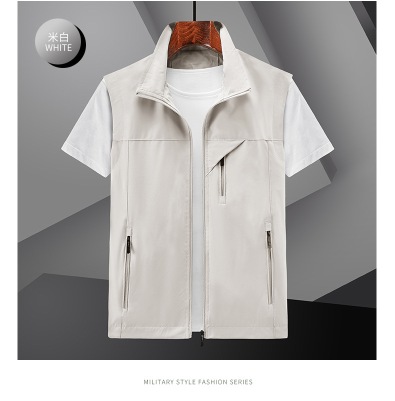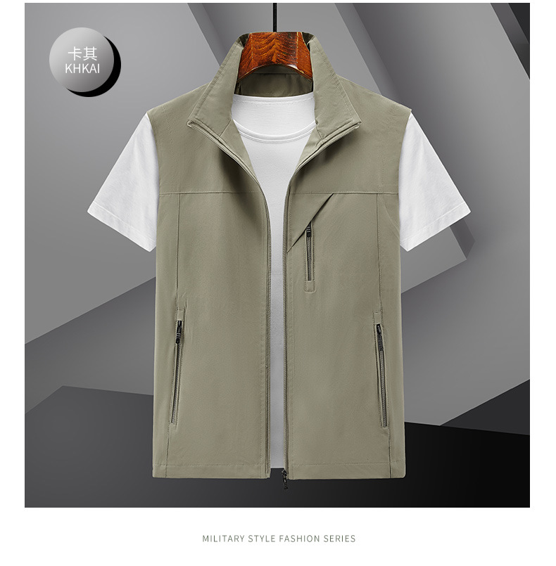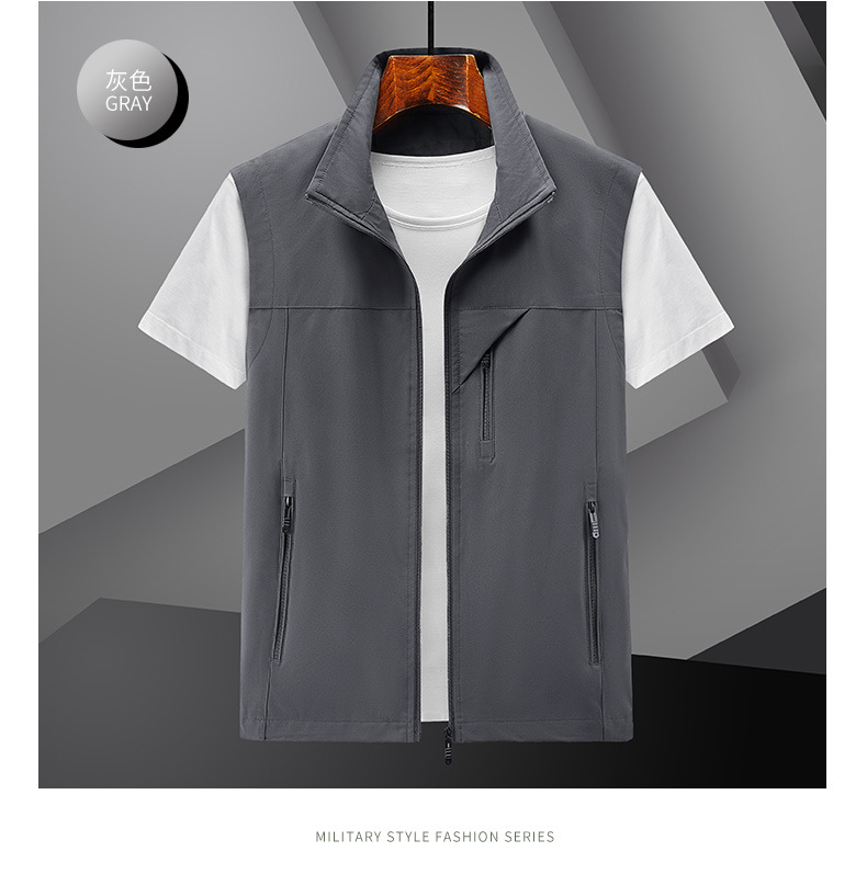 남성 야외 레저 봄과 가을 사진 낚시 산 등반 칼라 허리 코트 빠른 건조 루즈 조끼 외투