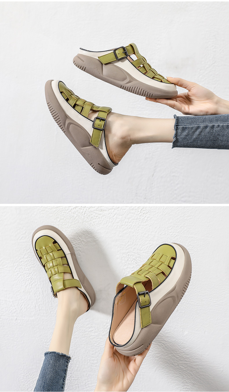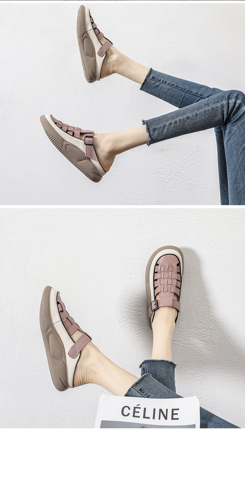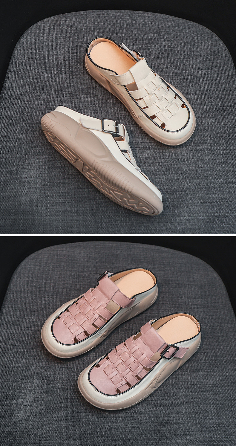 2025 여름 새로운 캐주얼 패션 아우터 올 매치 할로우 짠 바오터우 소프트 두꺼운 바닥 편안한 여성용 슬리퍼스토어 가기