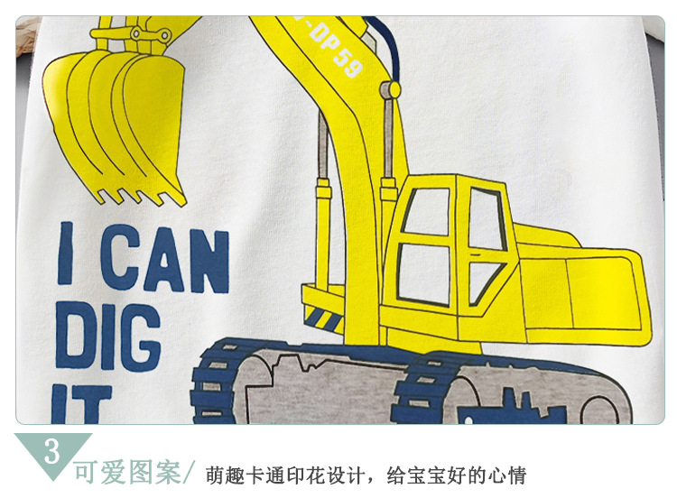 2025년 여름 남아용 반팔 티셔츠 흰색 라운드넥 상의 트렌디한 굴착기 패턴 반팔 공장 직배송스토어 가기
