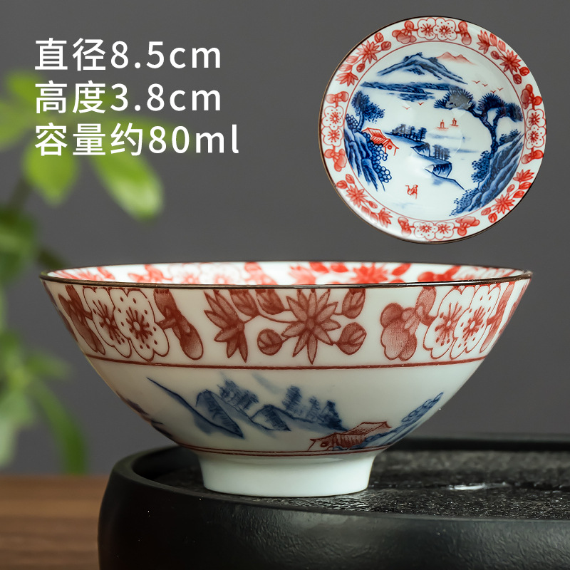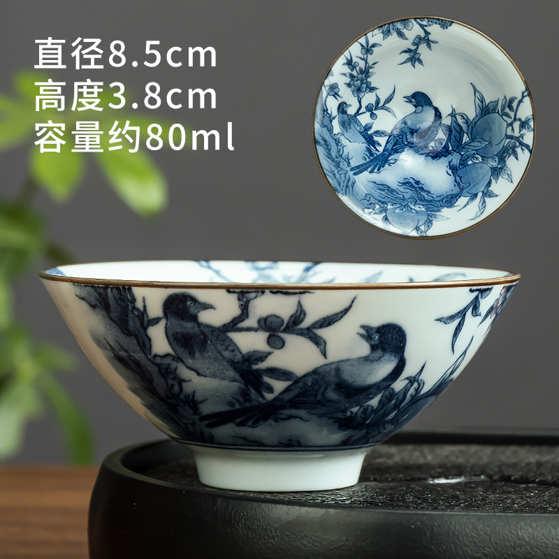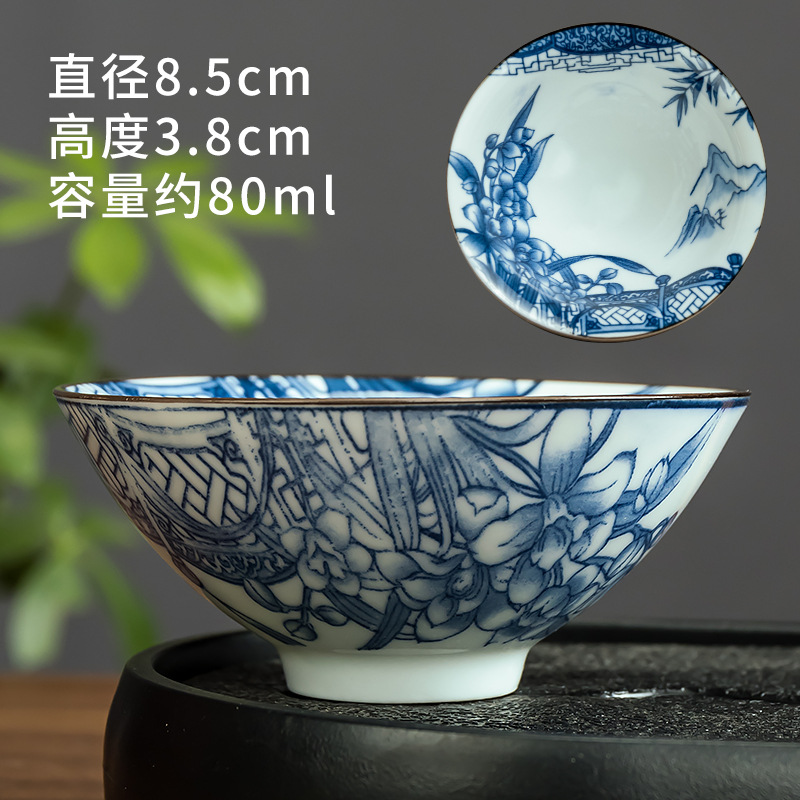 Dehua 복고풍 파란색과 흰색 세라믹 쿵푸 차 컵 쿵푸 차 세트 싱글 컵 티 컵 컵 컵 홈 마스터 컵 티 홀더