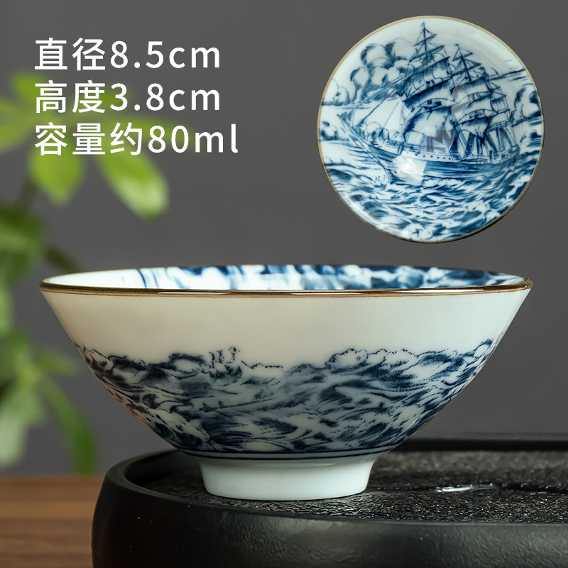 Dehua 복고풍 파란색과 흰색 세라믹 쿵푸 차 컵 쿵푸 차 세트 싱글 컵 티 컵 컵 컵 홈 마스터 컵 티 홀더스토어 가기