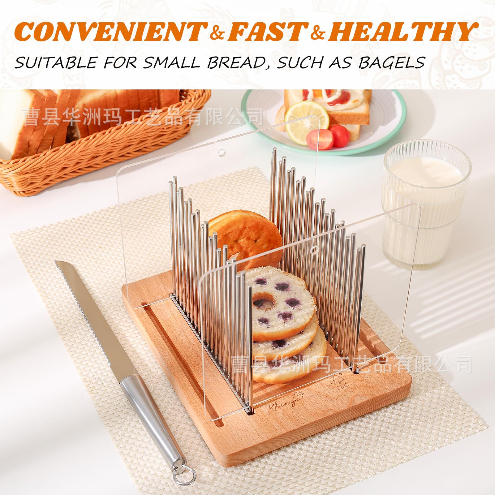 재고 있음, 즉시 배송 가능, 나무 빵 자르는 도마, 원목 빵 슬라이서, 스테인리스 토스트 빵 분할기스토어 가기