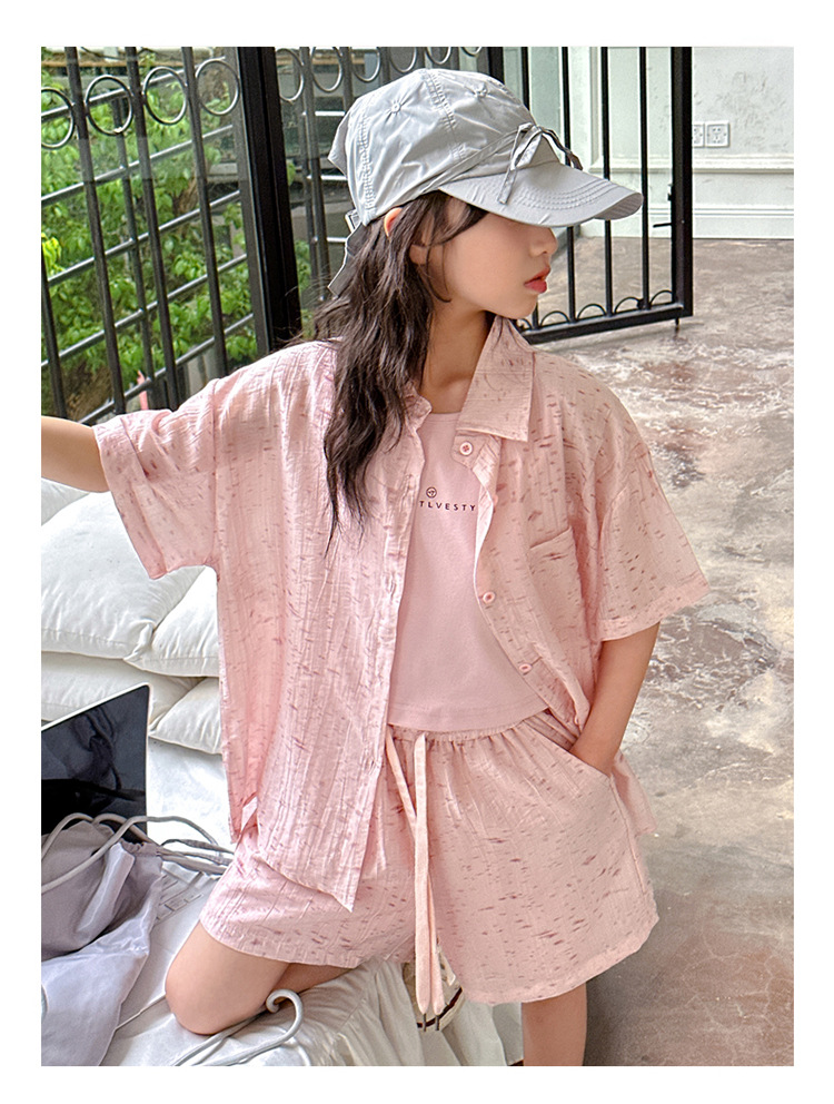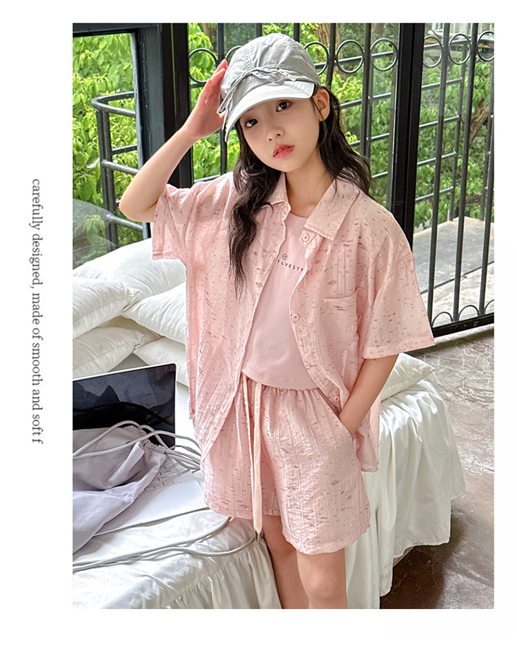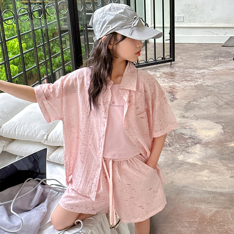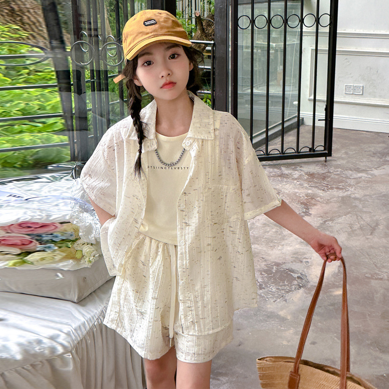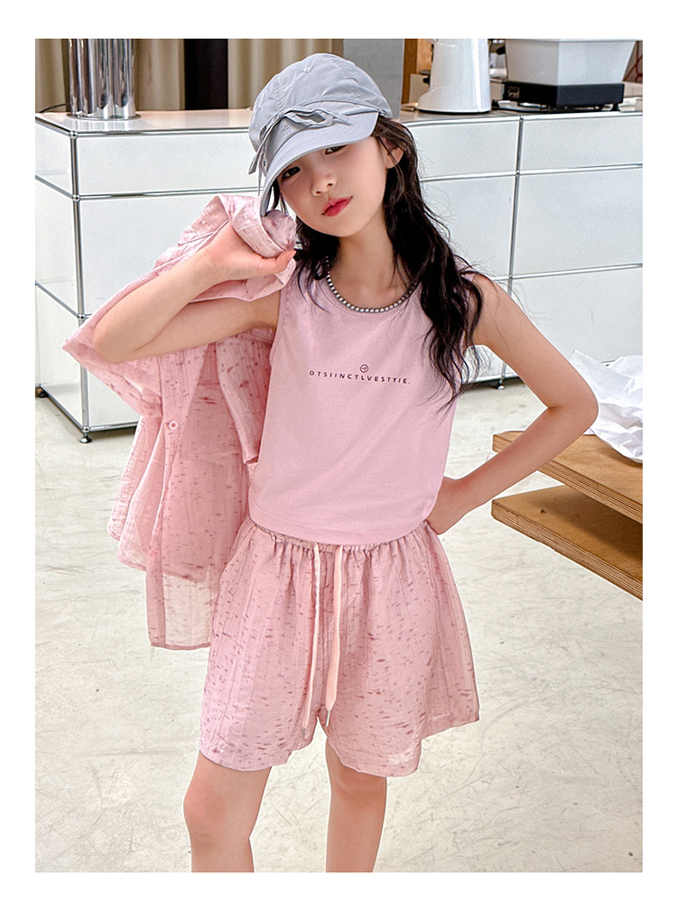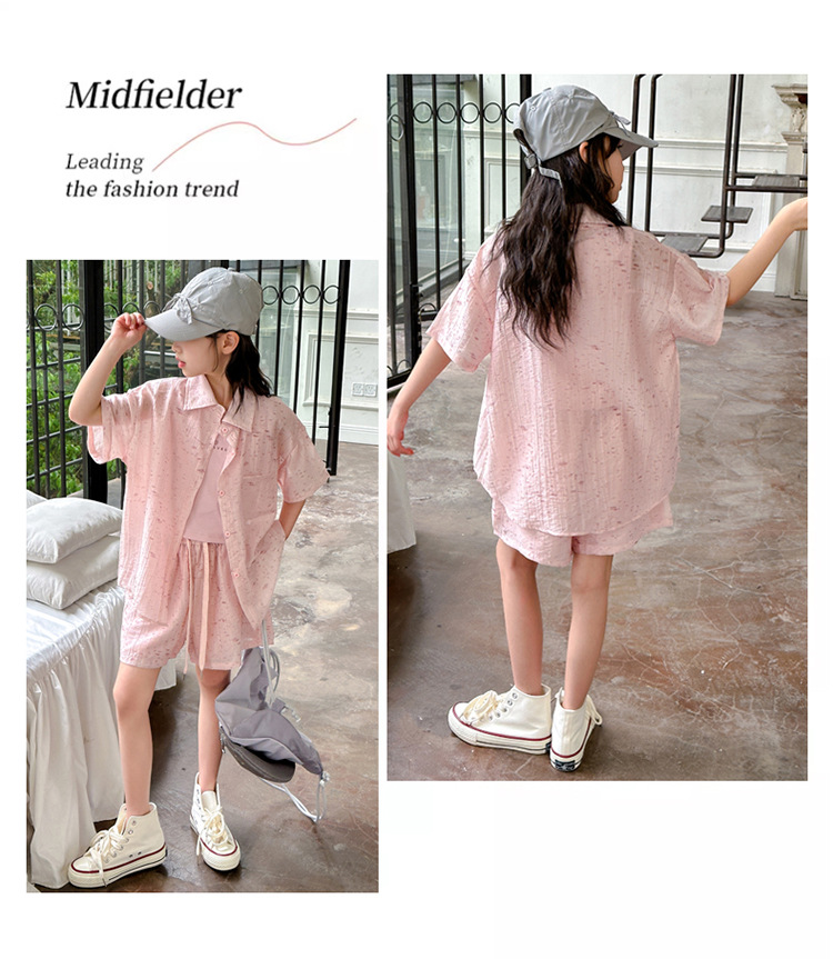소녀 여름 세트 2024 새로운 어린이 여름 의류 부모 태양 보호 의류 투피스 세트 아기 소녀 달콤한 옷