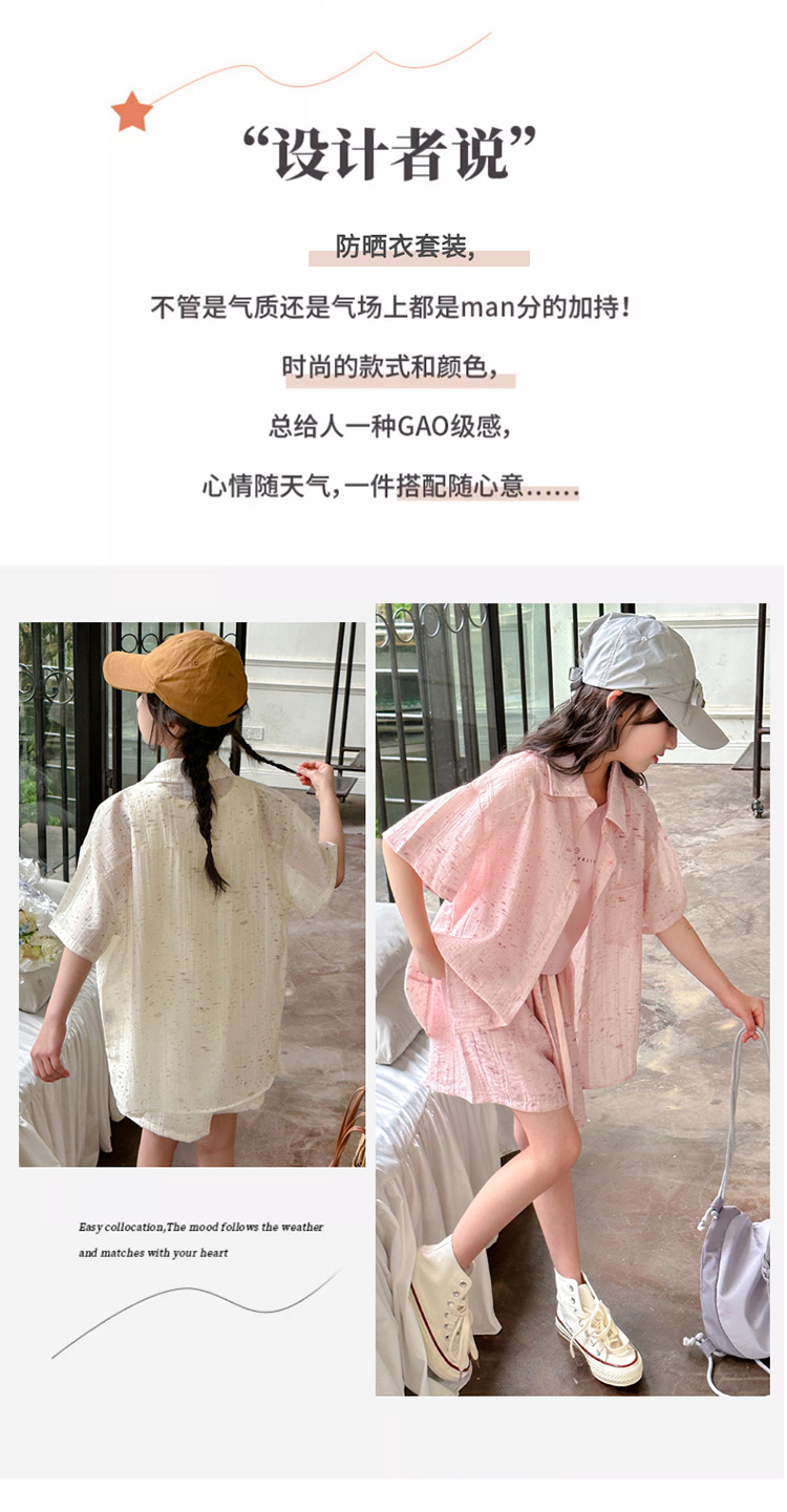 소녀 여름 세트 2024 새로운 어린이 여름 의류 부모 태양 보호 의류 투피스 세트 아기 소녀 달콤한 옷스토어 가기