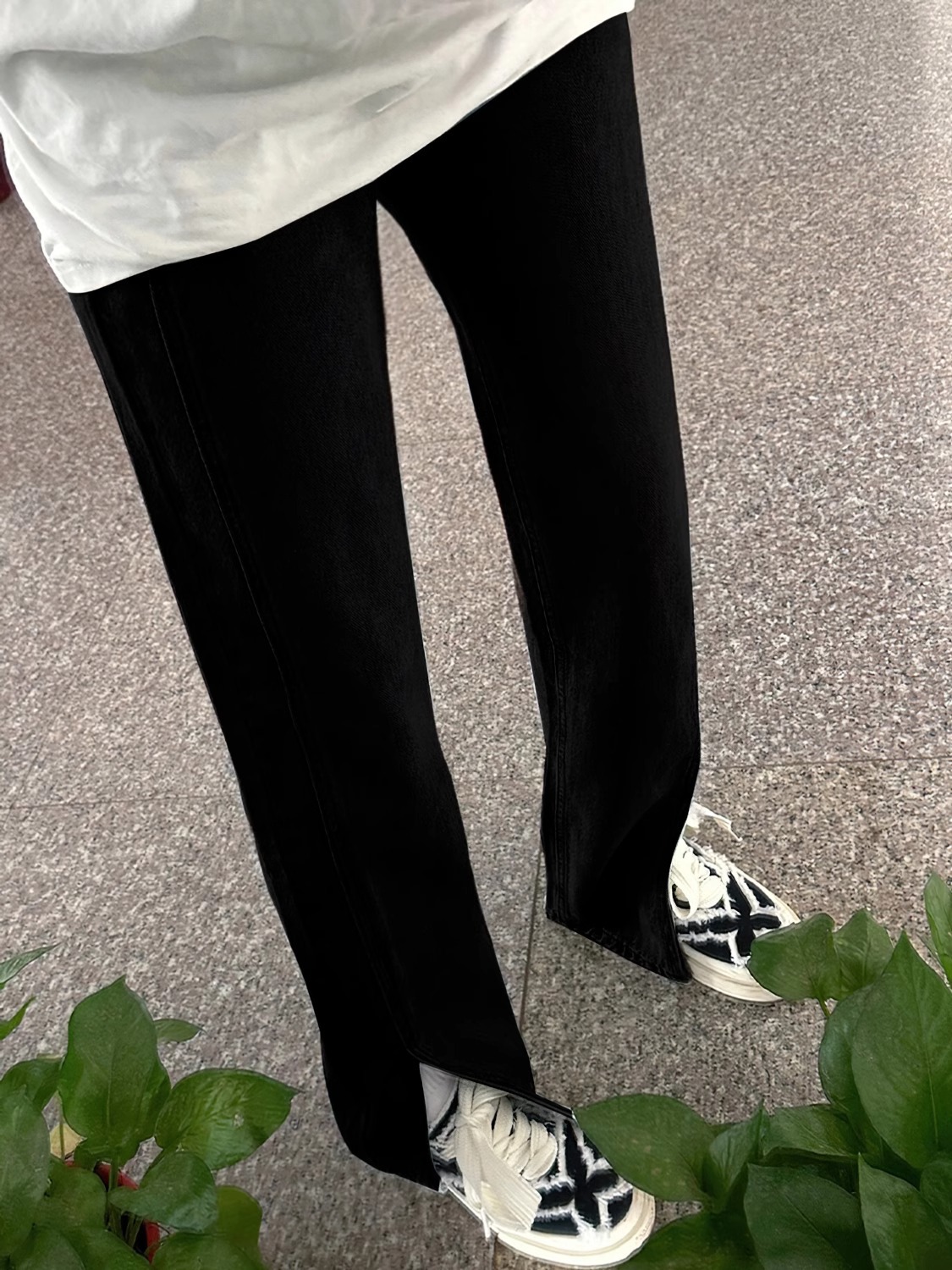 높은 허리 슬림 모양 작은 직선 다리 청바지 여성의 여름 새로운 느슨한 좁은 라이트 블루 슬릿 넓은 다리 바지