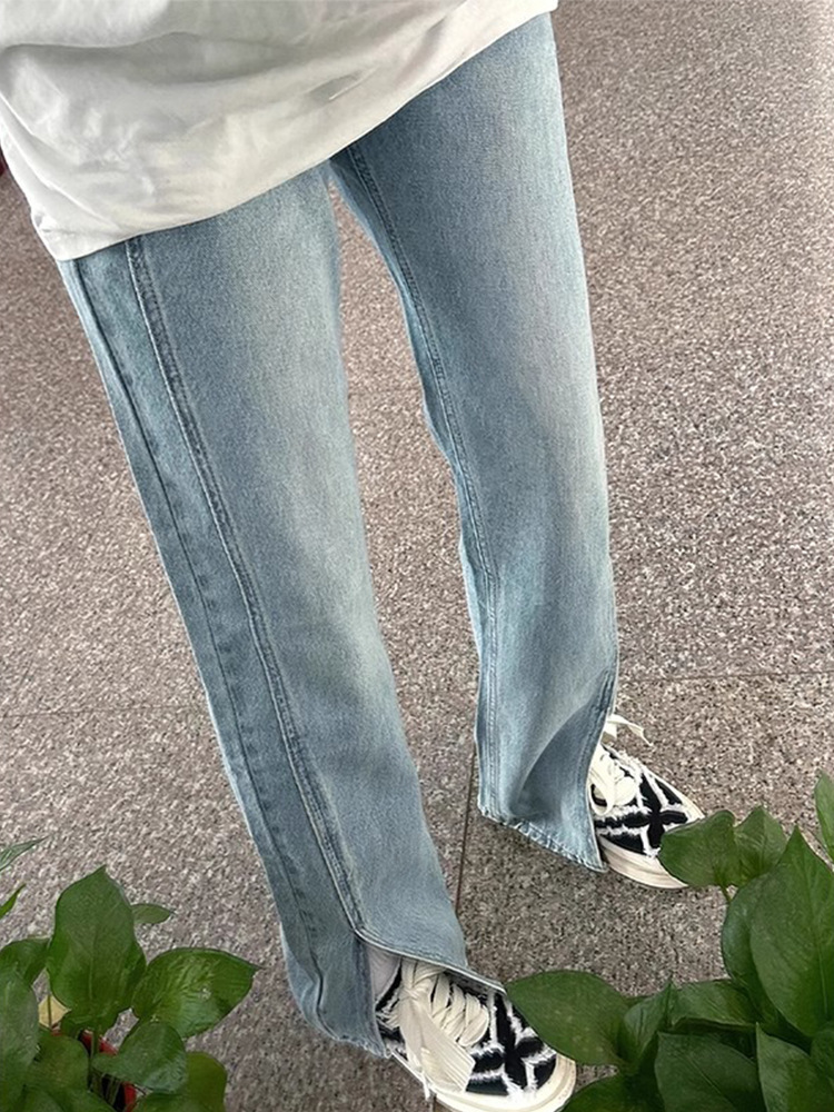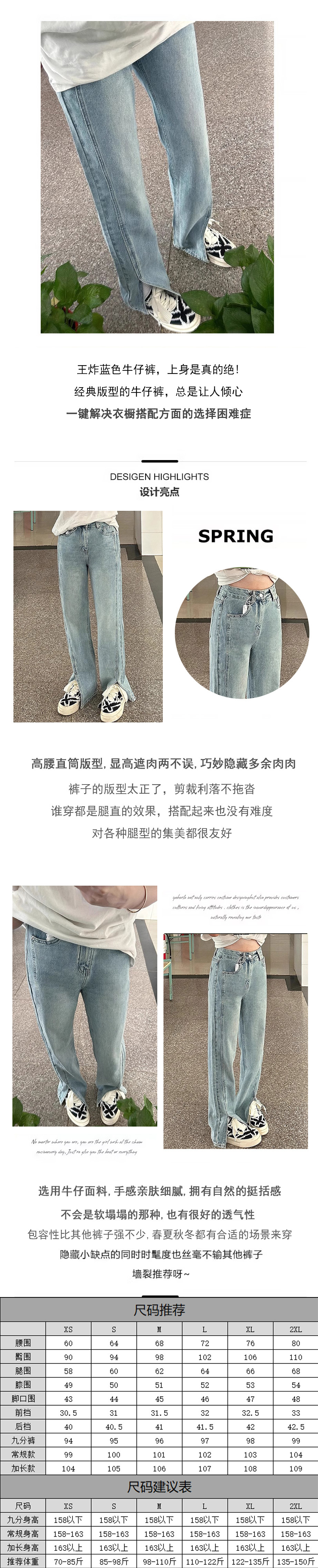 높은 허리 슬림 모양 작은 직선 다리 청바지 여성의 여름 새로운 느슨한 좁은 라이트 블루 슬릿 넓은 다리 바지스토어 가기