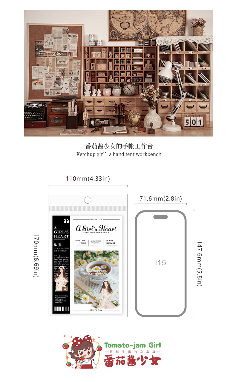 케첩 소녀 스티커 책 소녀의 심장 시리즈 컷 금형 소녀의 저널 손 계정 소재 장식 6