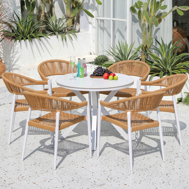 맞춤형 야외 테이블과 의자, 안뜰 빌라 발코니 등나무 의자, 호텔 정원 가구, 카페 접이식 테이블과 의자, 파라솔